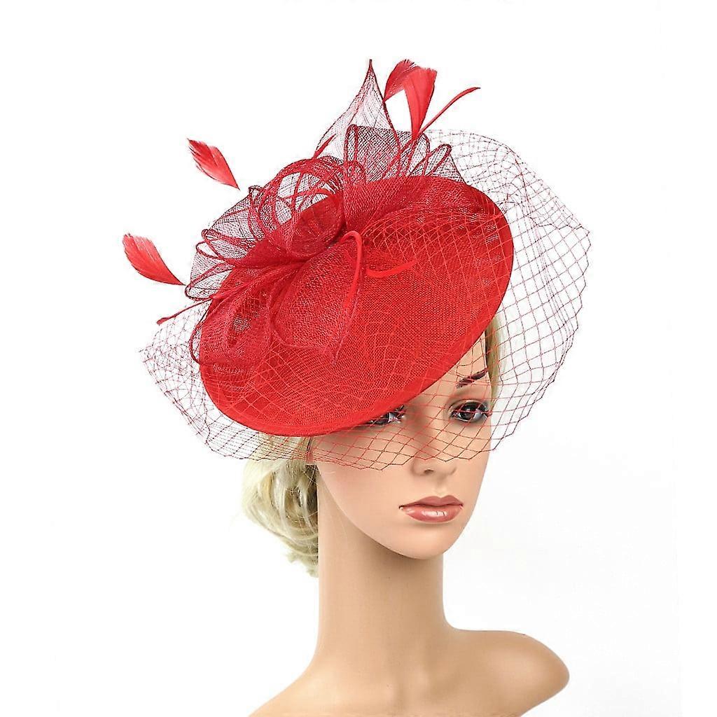 Hamky Hair Accessories,Hair Bands,Handmade Women Hair Clip Wedding Casual Fascinator Large Hat Headpieces,Fascinators Hats,Hair Tools Red