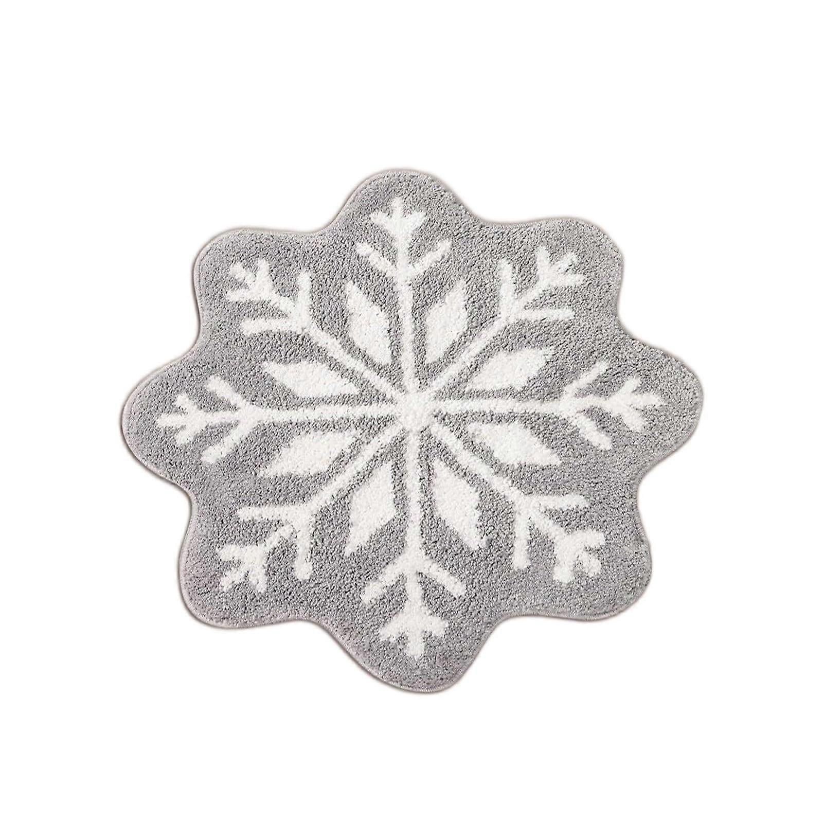 Gray Christmas Snowflake Bathroom Rug - Non-Slip Round Welcome Mat, Washable Tub & Kitchen Decor, compatible with Yonrjhukm