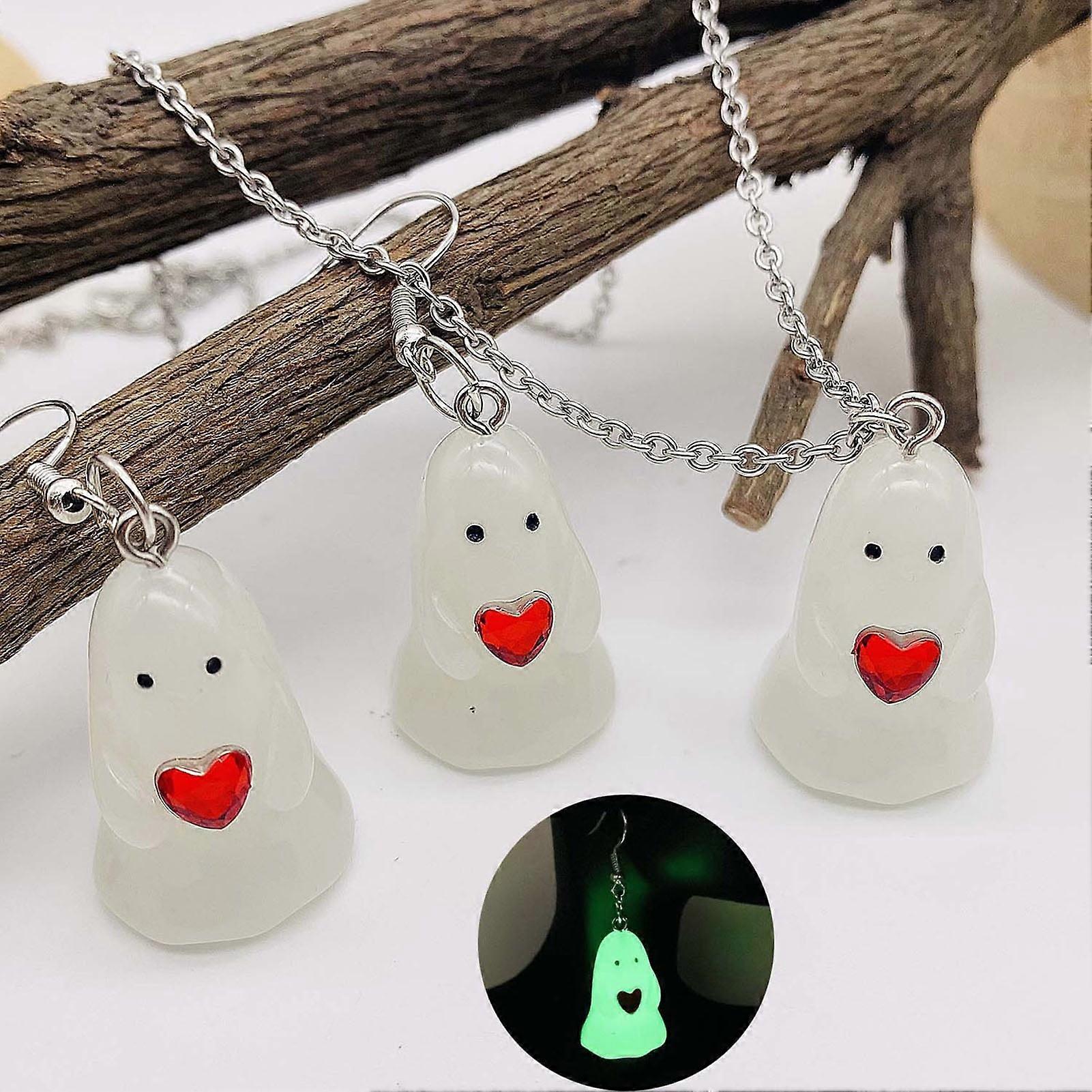 SUSUchens Ghost Jewelry Glow-In-The-Dark Ghost Necklace Earring Accessory Cute Resin Luminous Ghost Charm for Halloween Style L