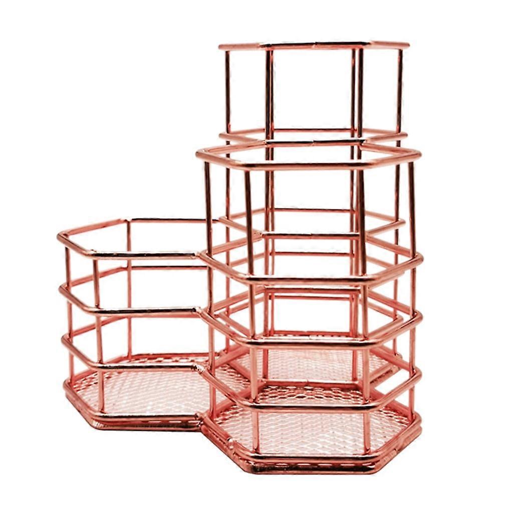 Nordic Gold Hexagonal Pen Holder, Compatible with Rose Gold Office Decor, Multifunctional Metal Desk Organizer, 1 Pack