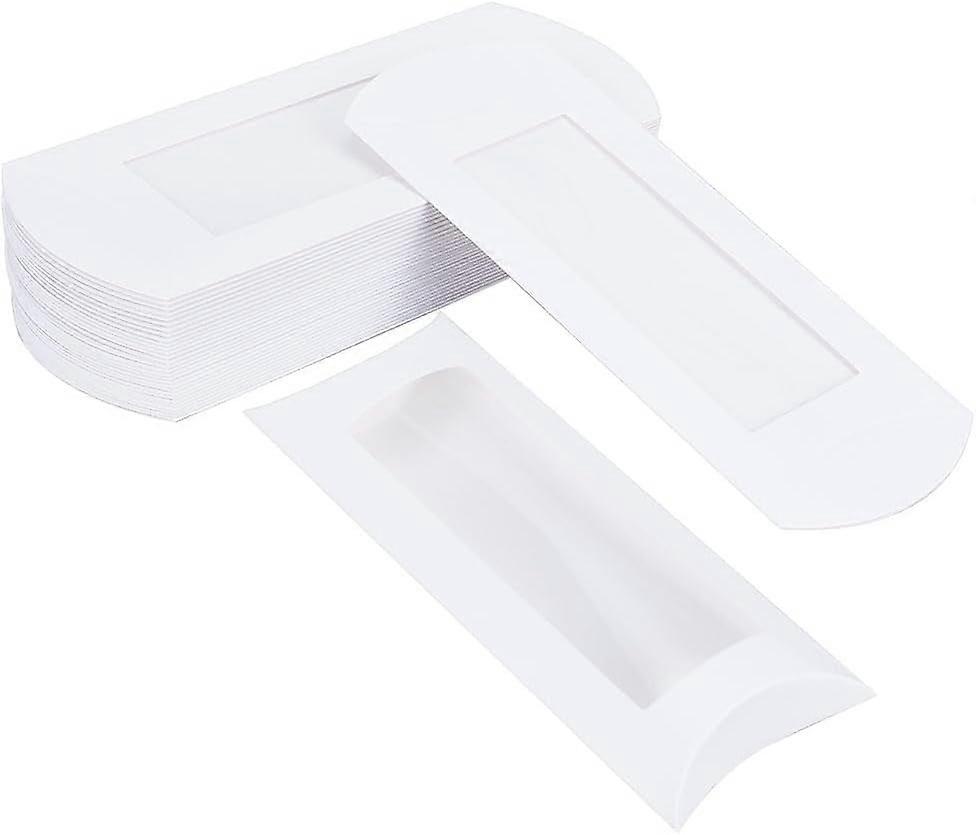 30pcs 6.3x2.8x1inch White Paper Pillow Candy Boxes Gift Boexes with PVC Visible Window for Birthday Wedding Party Favors Supplies DIY