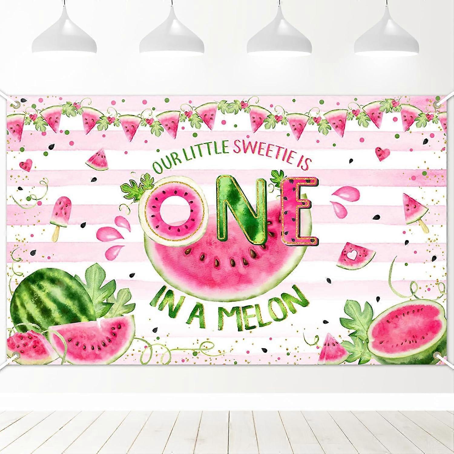 One in a Melon 1st Birthday Decorations, Pink & White Stripes Watermelon Theme Party Supplies, Banner 70.8" x 43.3", compatible with melon-themed