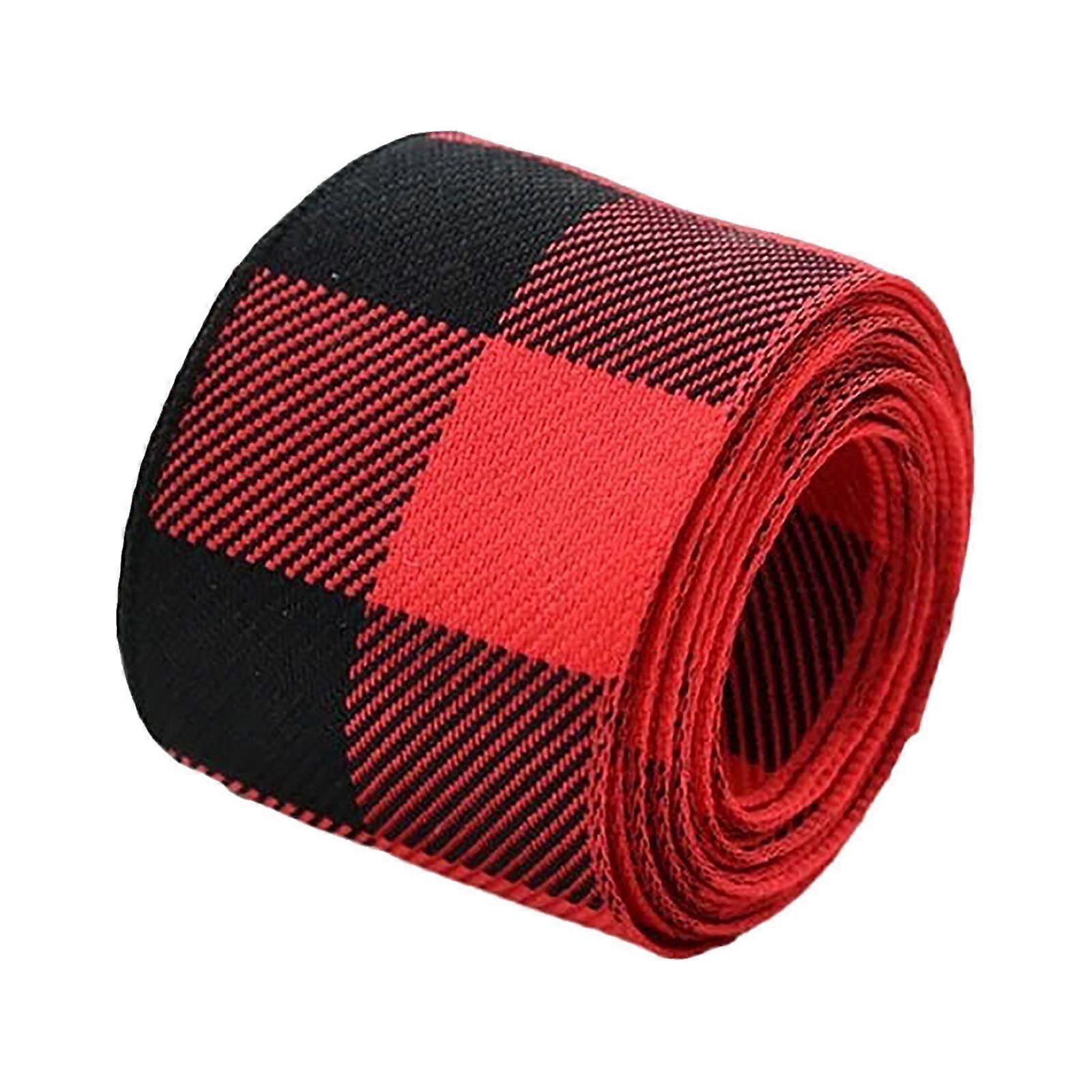 Winysin 6m Lattice Christmas Wired Edge Ribbon, Black Red Plaid, Black White Buffalo & Burlap Craft Ribbon for DIY Gift Wrapping, Xmas Decor