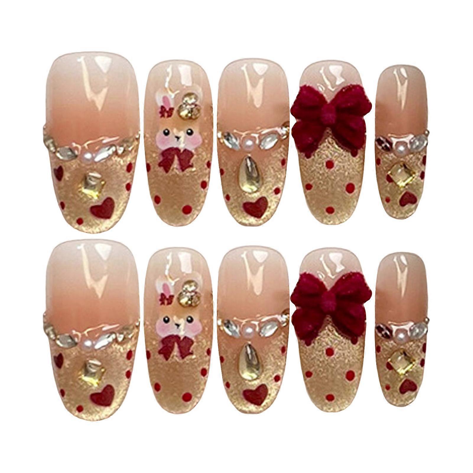 Features: Premium Quality Design: The champagne cat eye artificial nails are crafted with high-quality materials for a luxurious finish, ensuring durability and comfort for daily wear or special occasions. Stylish Cat Eye Effect: These press on false nails feature a mesmerizing cat eye shimmer that changes under light, offering an elegant and modern look suitable for parties or casual outings. Rhinestone Bow Decor: Each nail set includes intricate rhinestone bow details that enhance the overall charm, making them ideal for women who love fashionable and eye-catching designs. Perfect Fit & Easy Application: With multiple size options in each pack of 10 pieces, these false nails adhere securely and comfortably, allowing quick application without professional help. Versatile Usage: Suitable for both party events and everyday styling, these lucky rabbit inspired nails combine fun and elegance, giving users a confident and trendy appearance. Specifications: Material: ABS Plastic Size,Thumb(mm),Index Finger(mm),Middle Finger(mm),The Fourth Finger(mm),Little Finger(mm) XS,14,10,11,10,8 S,15,11,12,11,9 M,16,12,13,12,10 L,17,13,14,13,11 Include: 1 * Set of 10 Pcs False Nails
