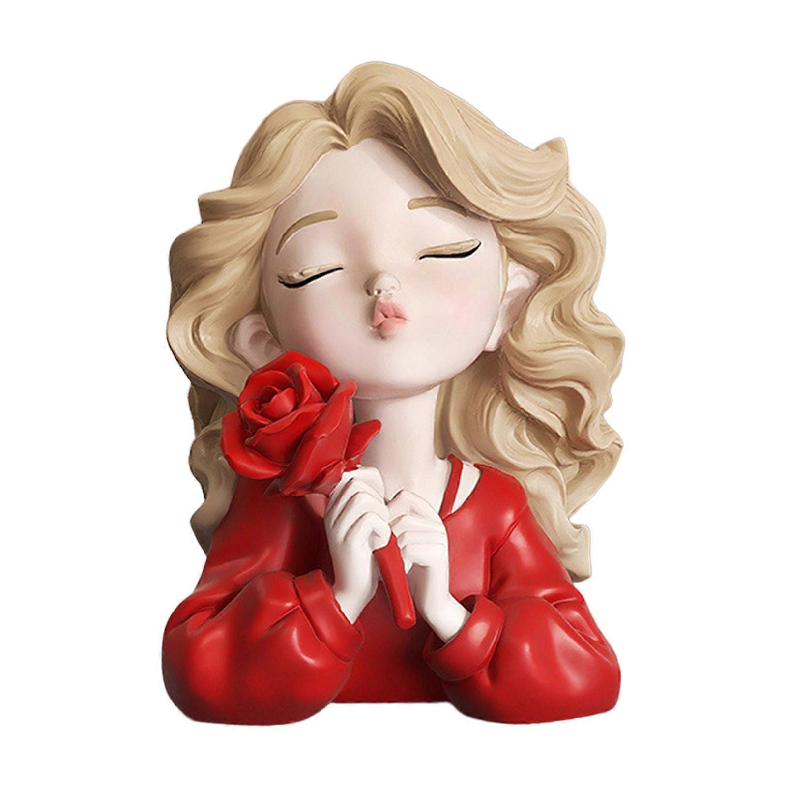 Girl Holding Floral Bouquet Statue Resin Girl Figurine Charming Table