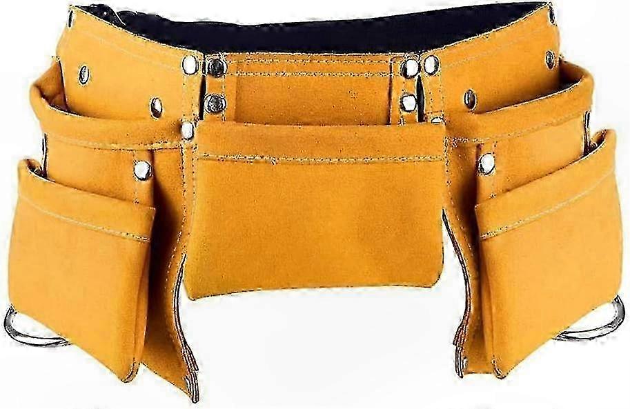 Kids Leather Tool Belt, Children's Leather Working Apron Pouch Bag (Yellow)