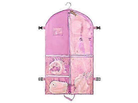 Multifunctional Hanging Design:Equipped with 5 PVC visible windows and 2 clip buckles for hanging, plus adjustable side buckles for stability. Lightweight, foldable structure allows easy storage in wardrobes or travel bags, saving up to 50% space compared to traditional garment bags.Large Capacity & Reusability:Fits 3-5 standard hangers, ideal for childrens dance costumes, dresses, jackets, and tuxedos. Transforms into a handbag when folded, with a durable build that withstands repeated use. Machine-washable material maintains shape after long-term storage.Transparent Window & ID Pocket:Side PVC windows enable quick identification of stored items without unpacking. A central clear pocket on the left side holds ID badges, tickets, or accessories, perfect for dance competitions or travel.Waterproof & Breathable Protection:Made from high-quality waterproof fabric that repels rain, blocks dust, and prevents moth damage. Breathable material keeps clothes fresh, while sturdy zippers ensure secure closure during transit.Portable Foldability for All Occasions:Collapses into a compact pouch for easy carrying in luggage or dance bags. Suitable for kids dance events, travel, or wardrobe organizationprotects delicate fabrics while keeping spaces tidy.