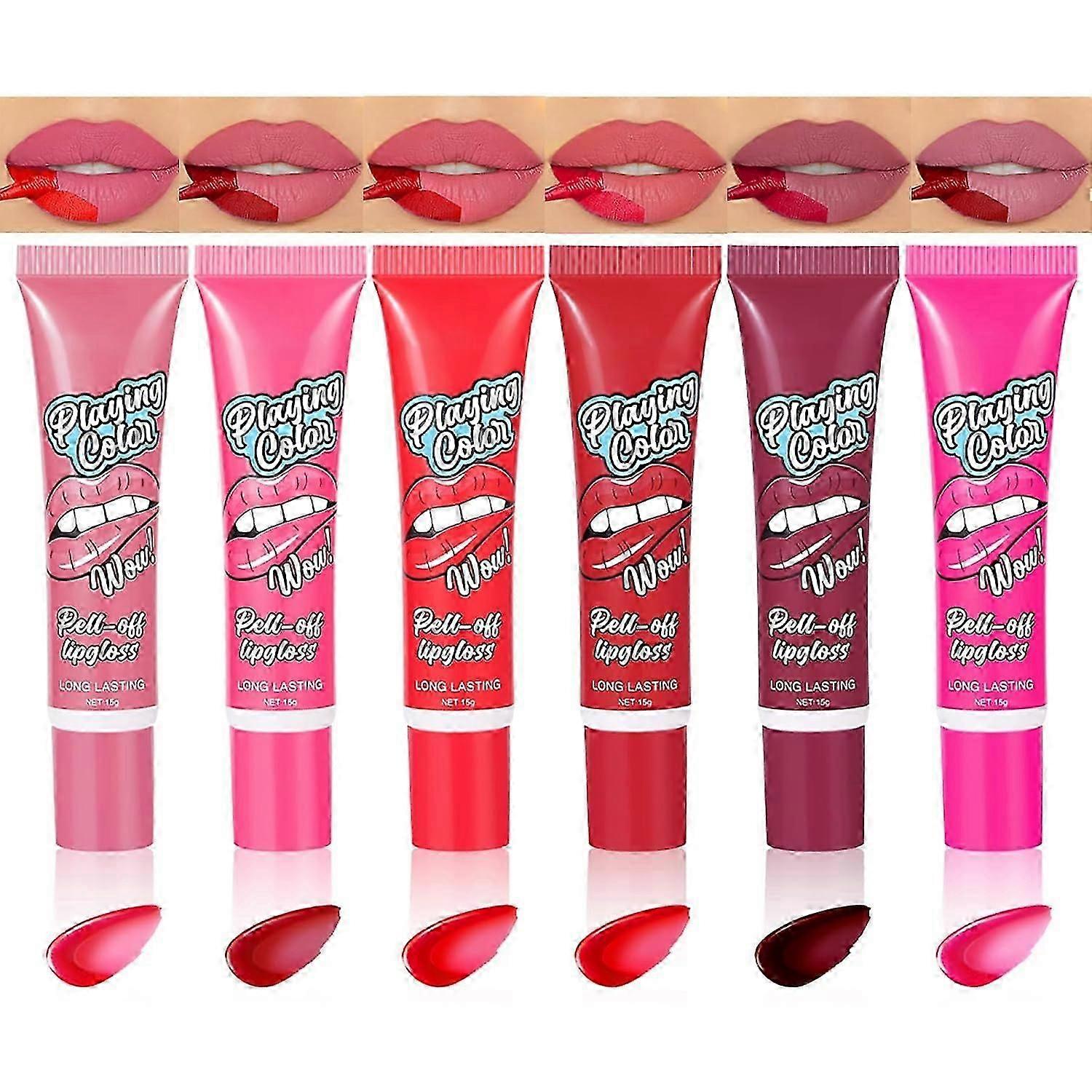 6-Colour Lip Stain and Gloss Set, Peel-Off Tattoo Lip Tint for Waterproof, Long-Lasting Matte Finish, Non-Stick Formula