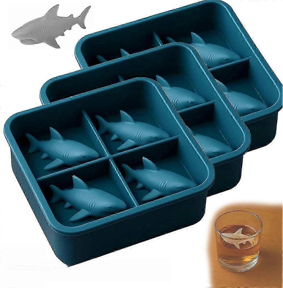 Shark Silicone Ice Mold with 4 Cavities for Fun 3D Ice Cubes in UK Cocktails and Drinks, Easy-Release Design.