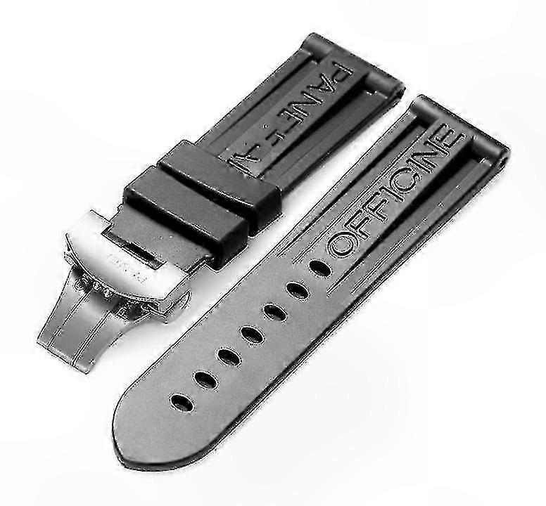 Black Silicone Watch Band with Butterfly Buckle for Panerai Replacement Steel Buckle Rubber Strap Tool
