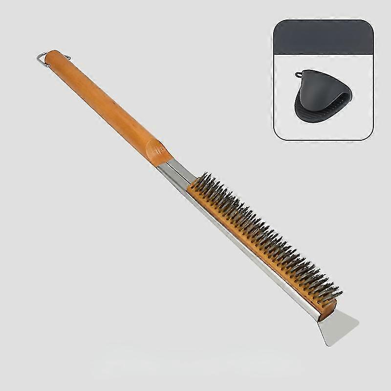 21-Inch Pizza Oven Brush with Scraper and Wood Handle for Effortless Stone and Grill Cleaning