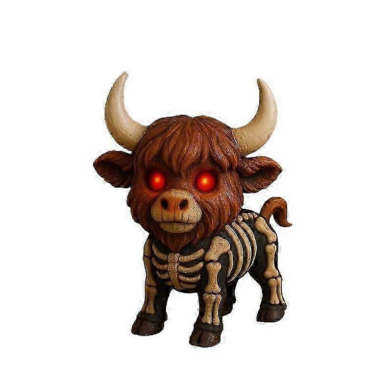 Skeleton Highland Cow Statue for Fall Decor, Farmhouse Figurine Gift for Shelf or Table Display