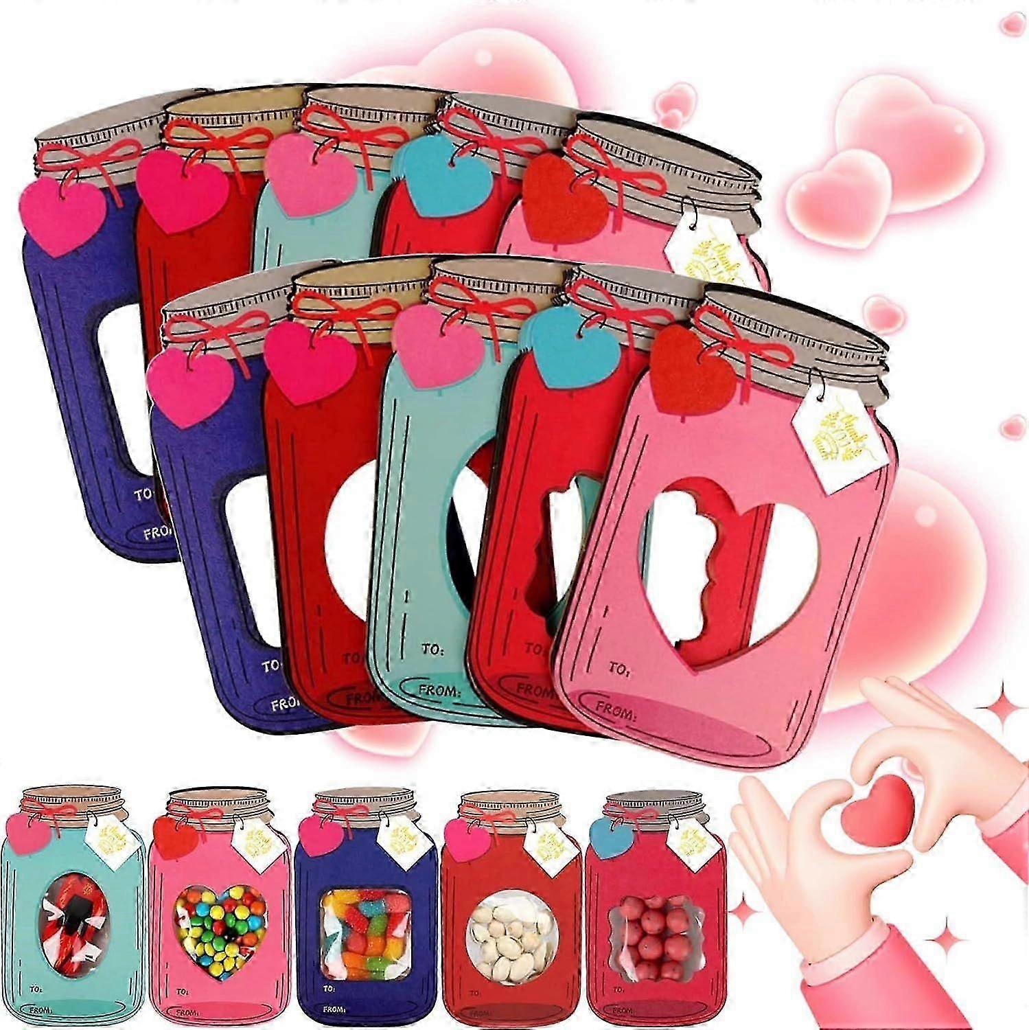 Mason Jar Valentine's Day Cards, 50-Pack Greeting Cards for Kids' School Exchange Parties, Funny Gifts for UK Celebrations