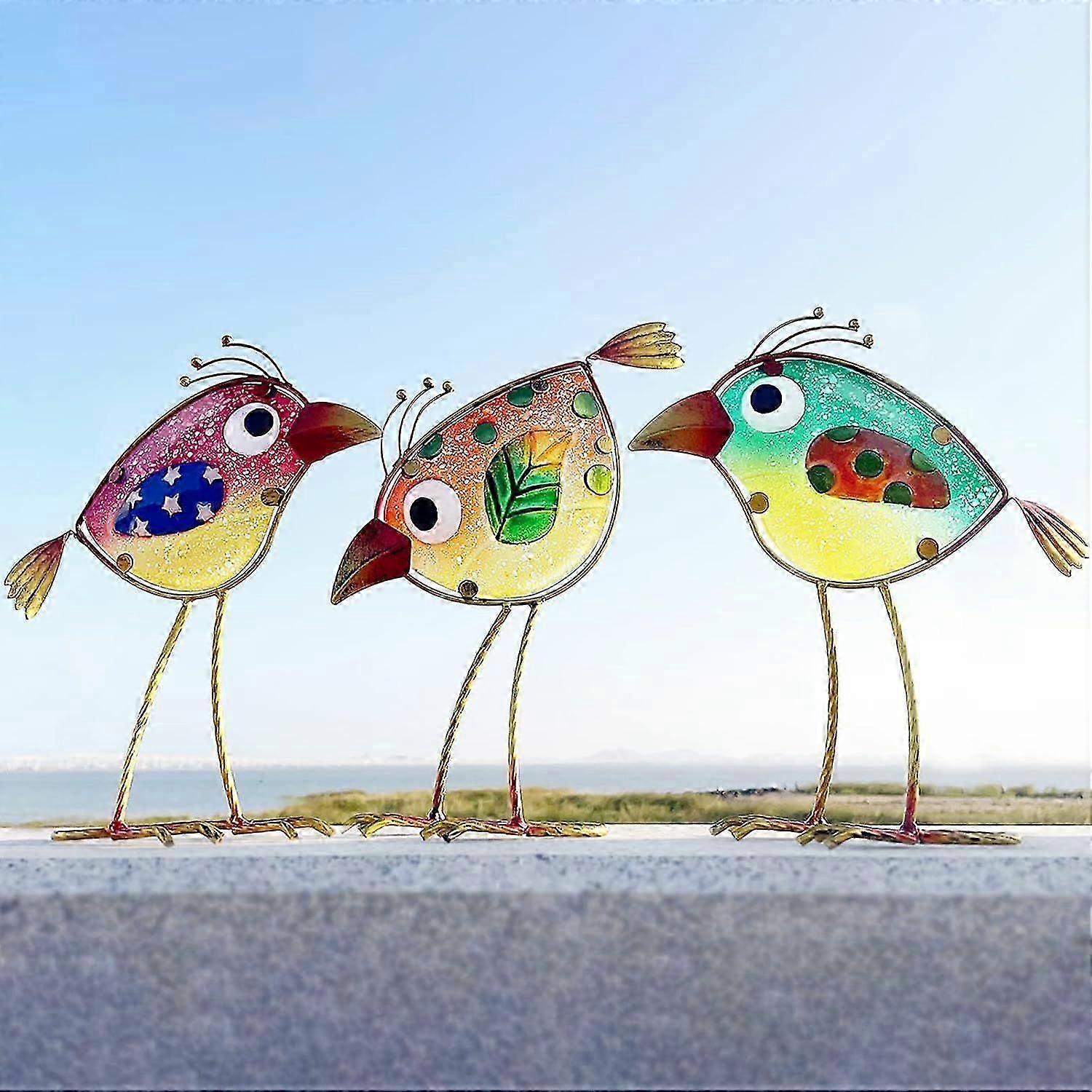 Funny Metal and Glass Bird Decor Set of 3 - Colourful Garden Art for Indoor and Outdoor Yard Decorations