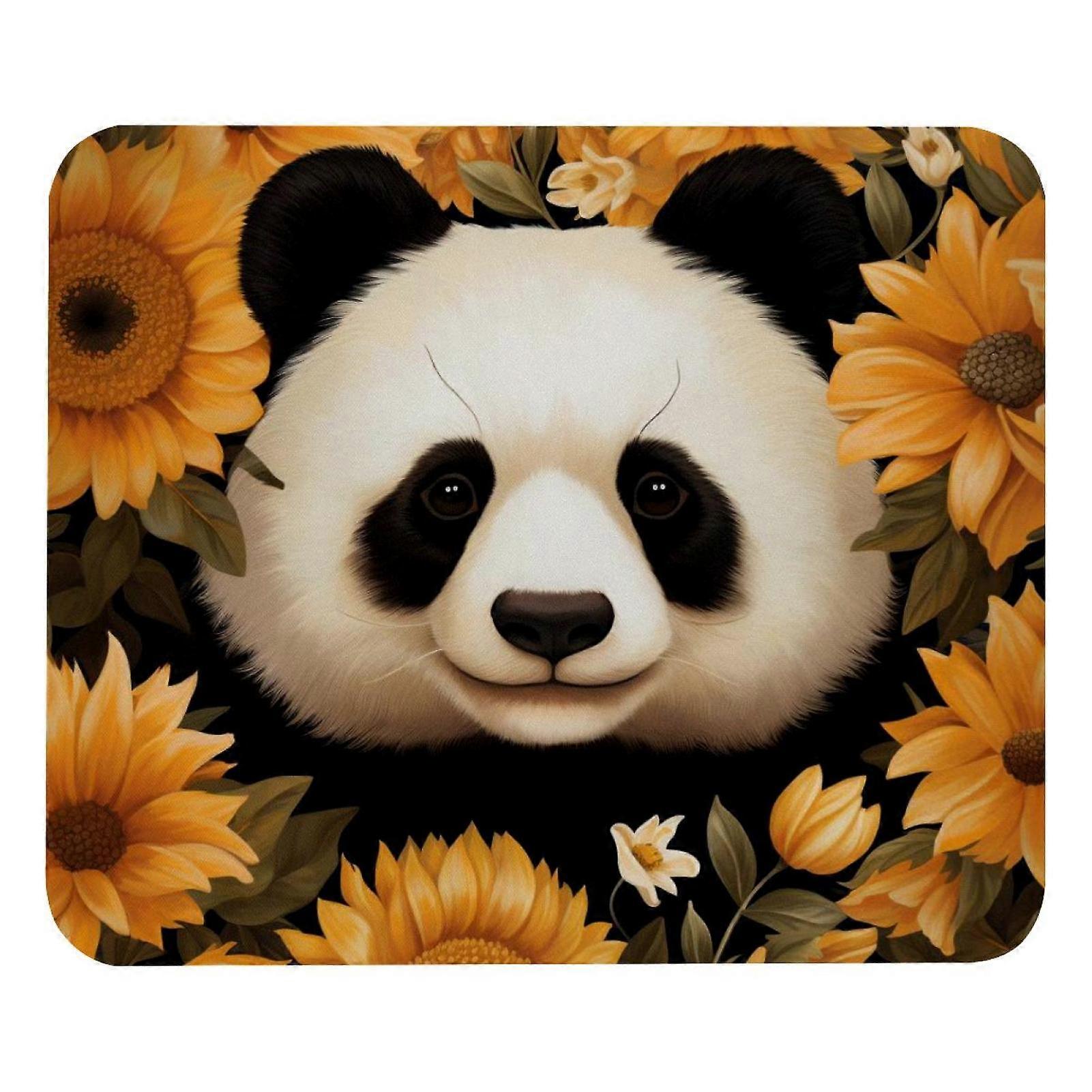 Panda Sunflower Desk Mat, Small Gaming Mouse Pad with Rubber Base, Compatible with Office, Work, Home & Game Setup