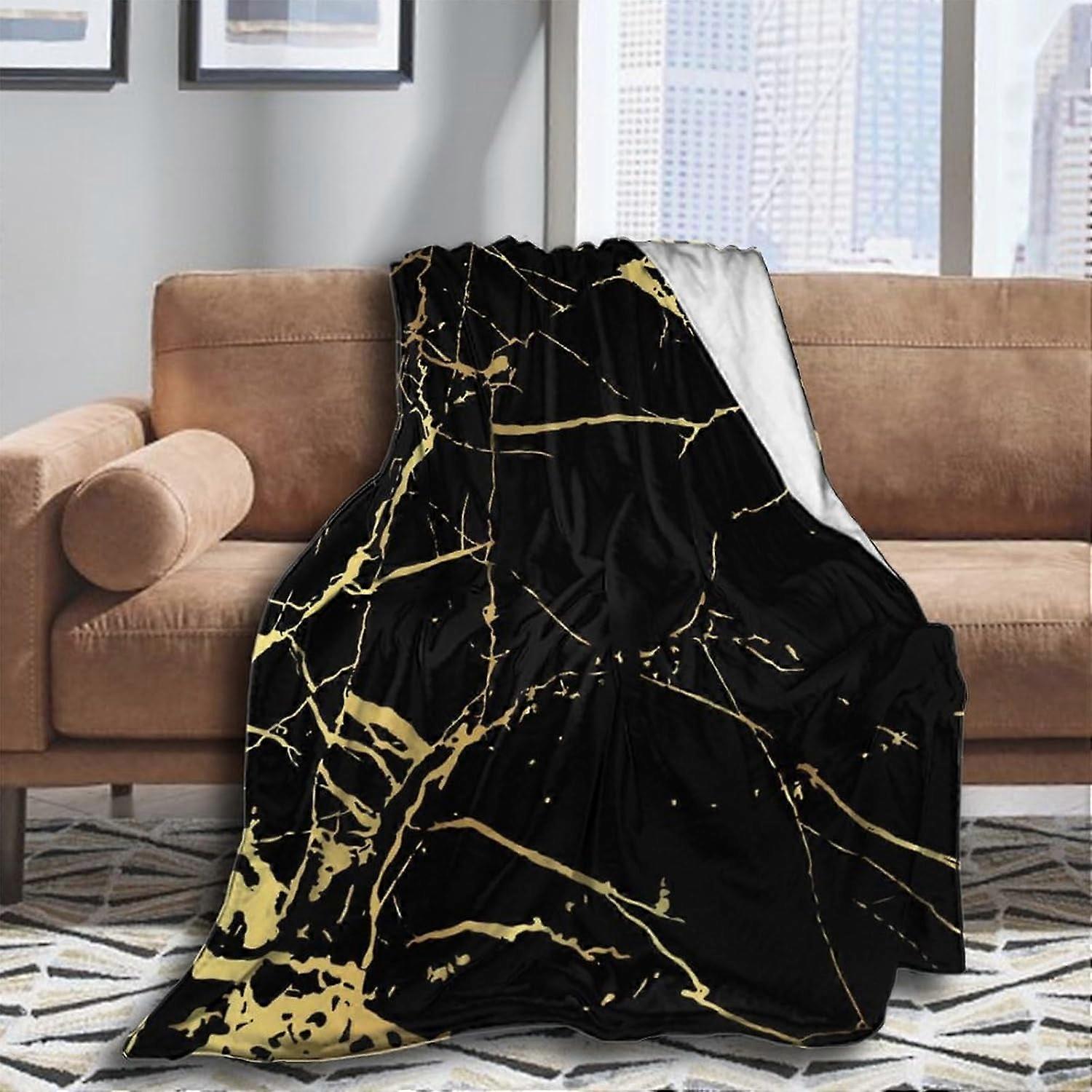 Black and Gold Marble Texture Throw Blanket Super Smooth Soft Throw Blanket Lightweight for Bed Couch Sofa Travelling Camping Teens Adults 50"x40"