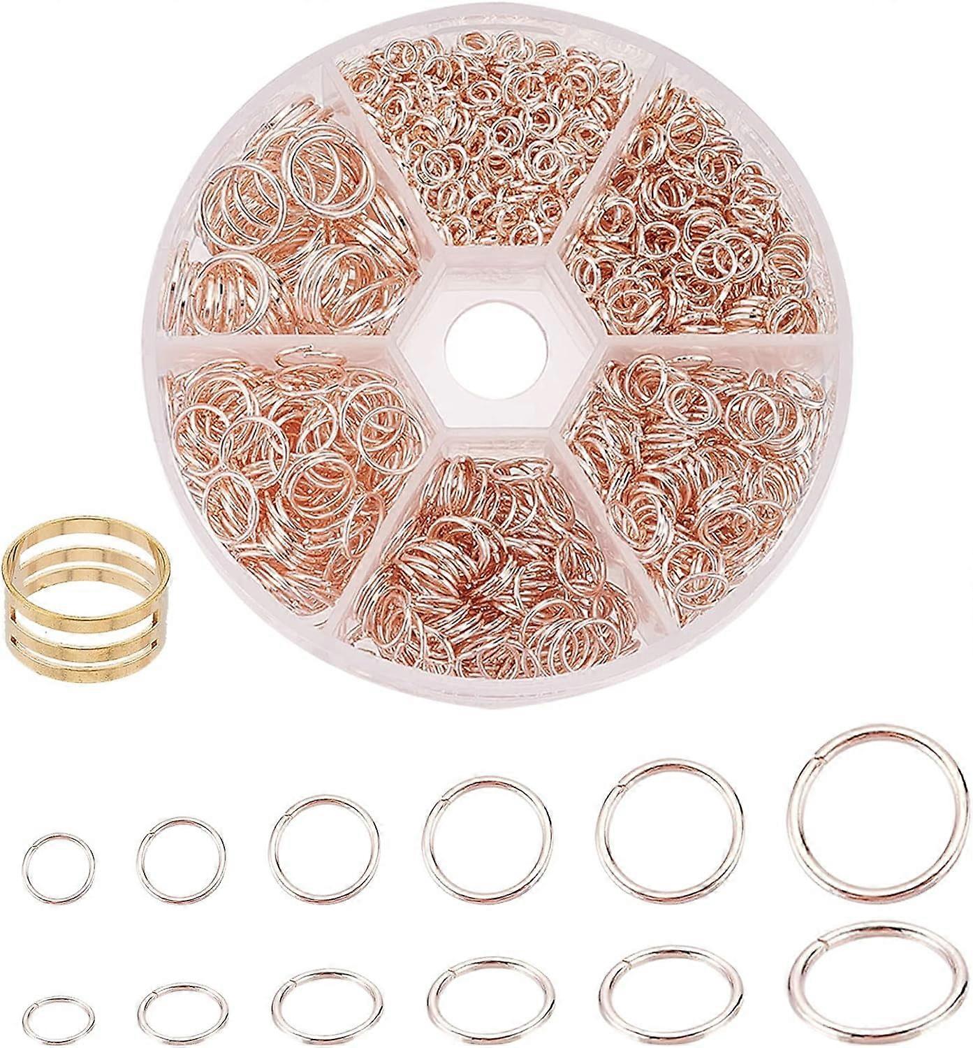 1250pcs Jump Rings 6 Sizes (4-10mm) Rose Gold Open Connectors for Earring, Bracelet, Necklace Making