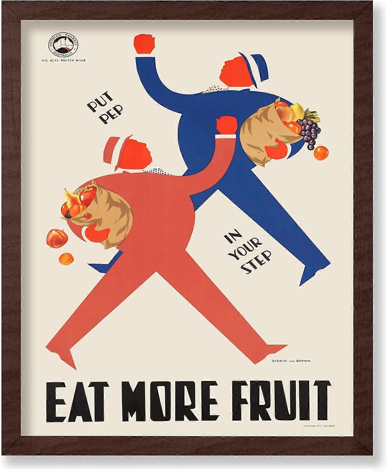 Vintage Food Poster - Retro Advertising Print, Eat More Fruit, Colorful Wall Decor for Kitchen, School - 16x20 Brown Unframed
