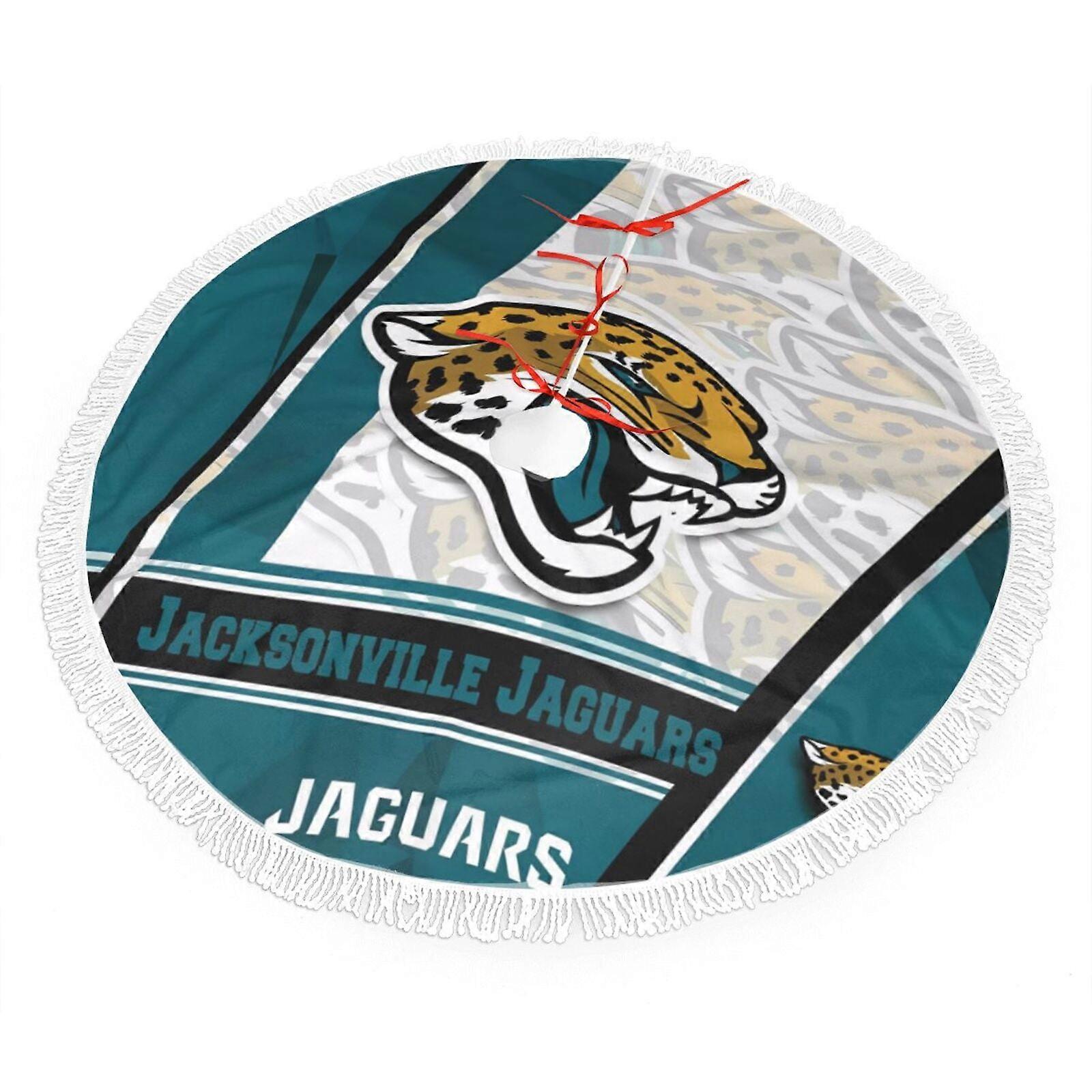 Jaguars Christmas Fringe Tree Skirt, compatible with NFL fans' decor, 30" 36" 48", plush, easy install, bright team colors, great gift
