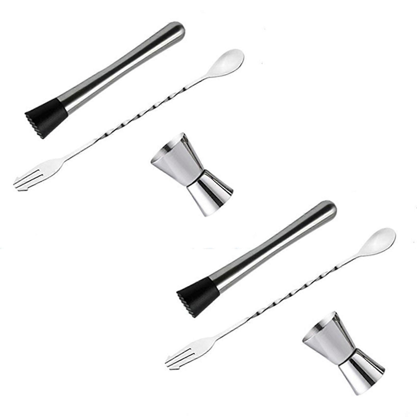 2X Stainless Steel Cocktail Muddler, Mixing Spoon, Jigger Set, Bar Tool Set for Bar Party Wine Cocktail Drink Shaker