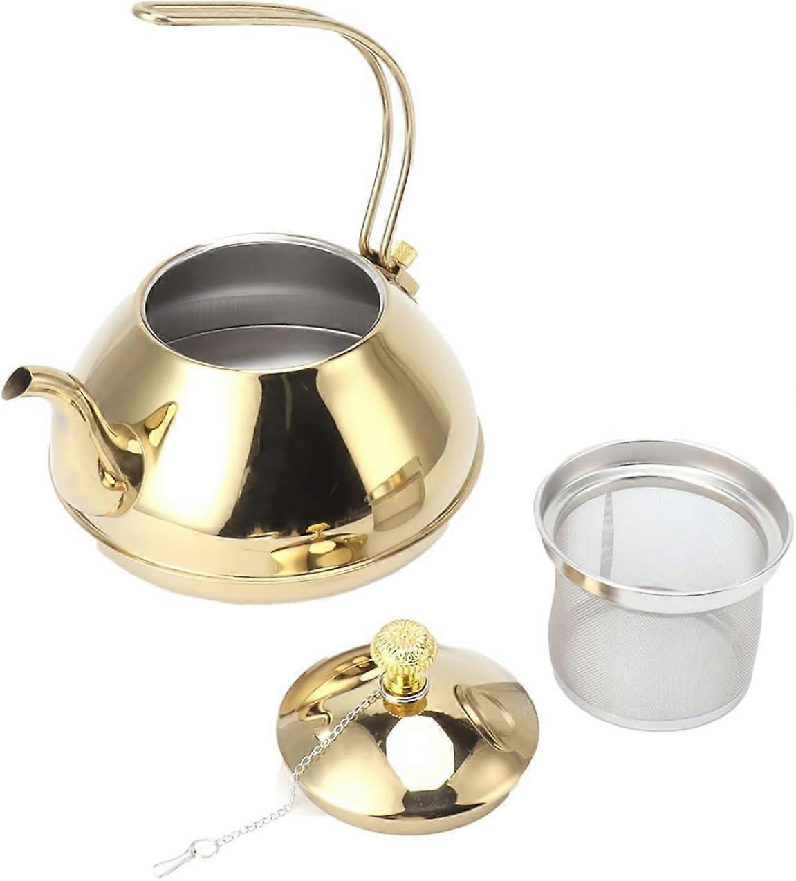 Stainless Steel Tea Kettle, Large Capacity with Strainer, Compatible with Gas, Induction, Electric Stoves - Gold Color