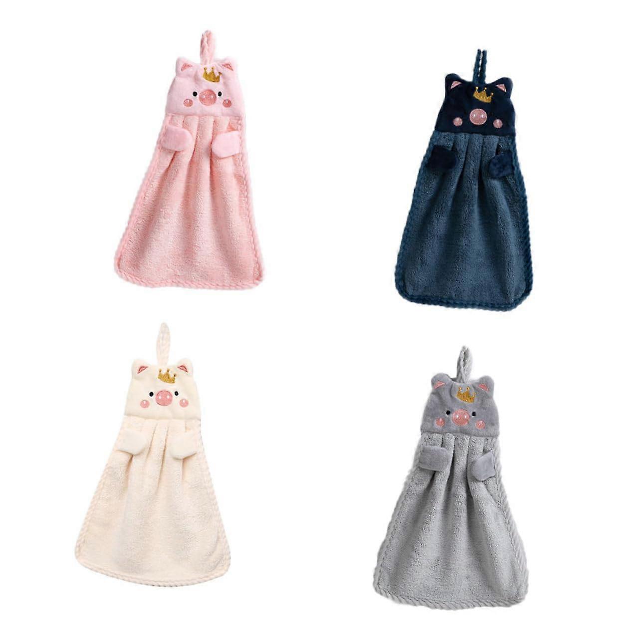 4Pcs Cute Pig Embroidered Hand Towels Fast Drying Water Absorbent Kitchen Bathroom Wipes with Hanging Rope Design
