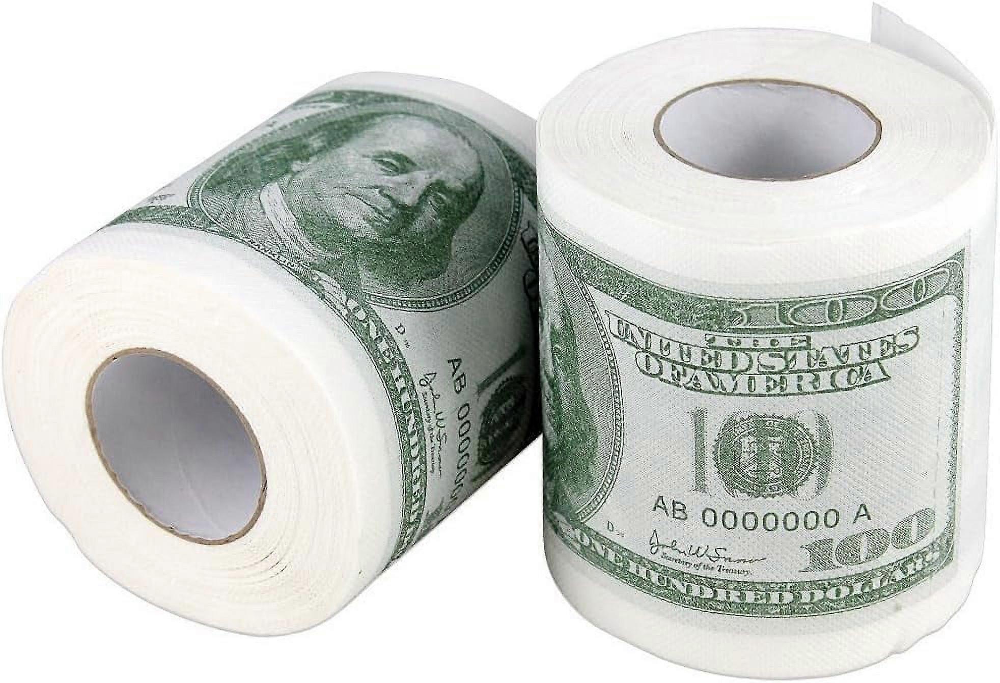 2pcs Money Rolls Bathroom Tissue Novelty 100 Dollar Bills - Pack of 2