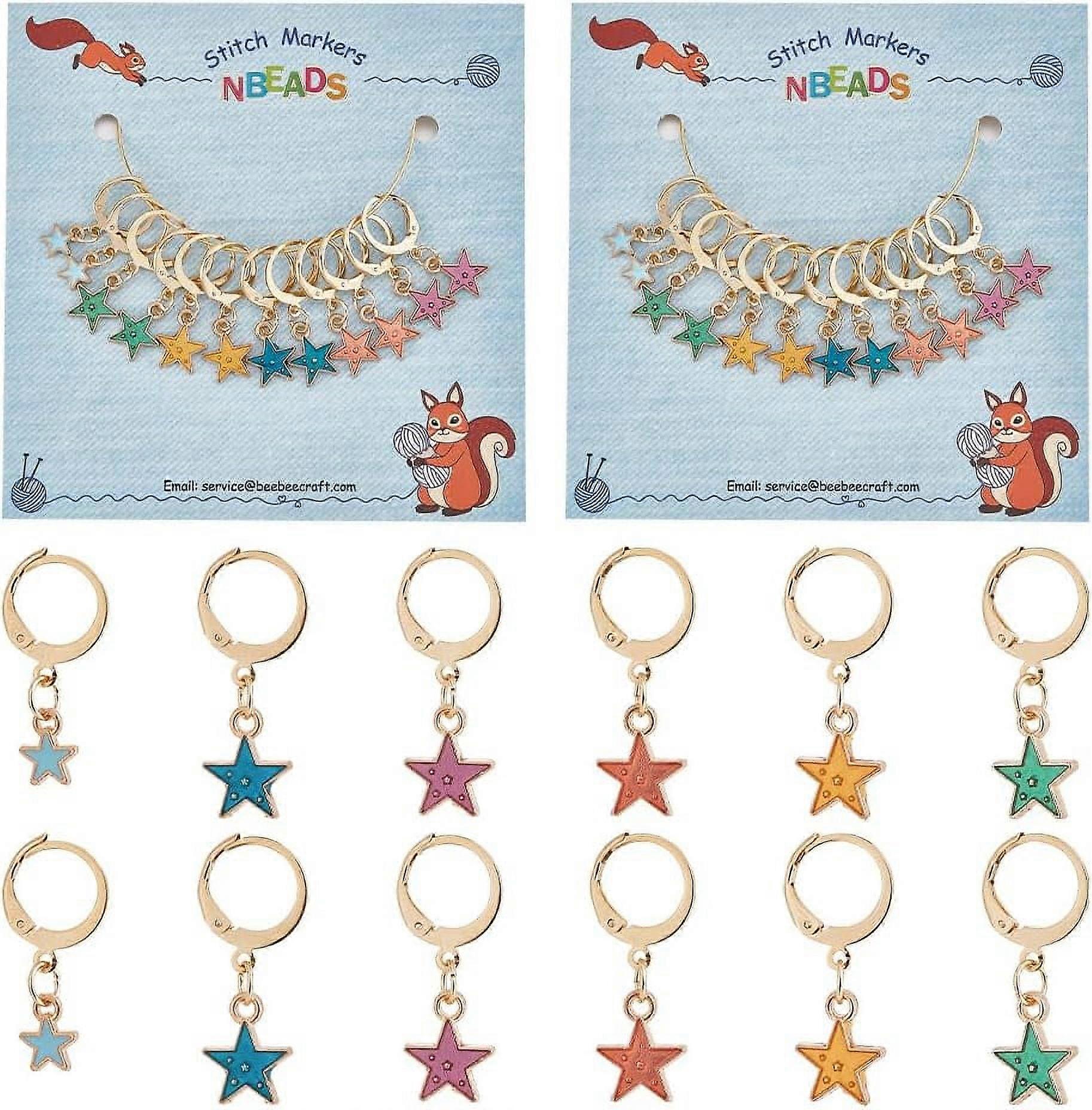 24 Pcs Star Stitch Markers, Alloy Enamel Charms with 304 Stainless Steel Clasp, Locking Crochet Markers for Knitting, Sewing, Jewelry Making