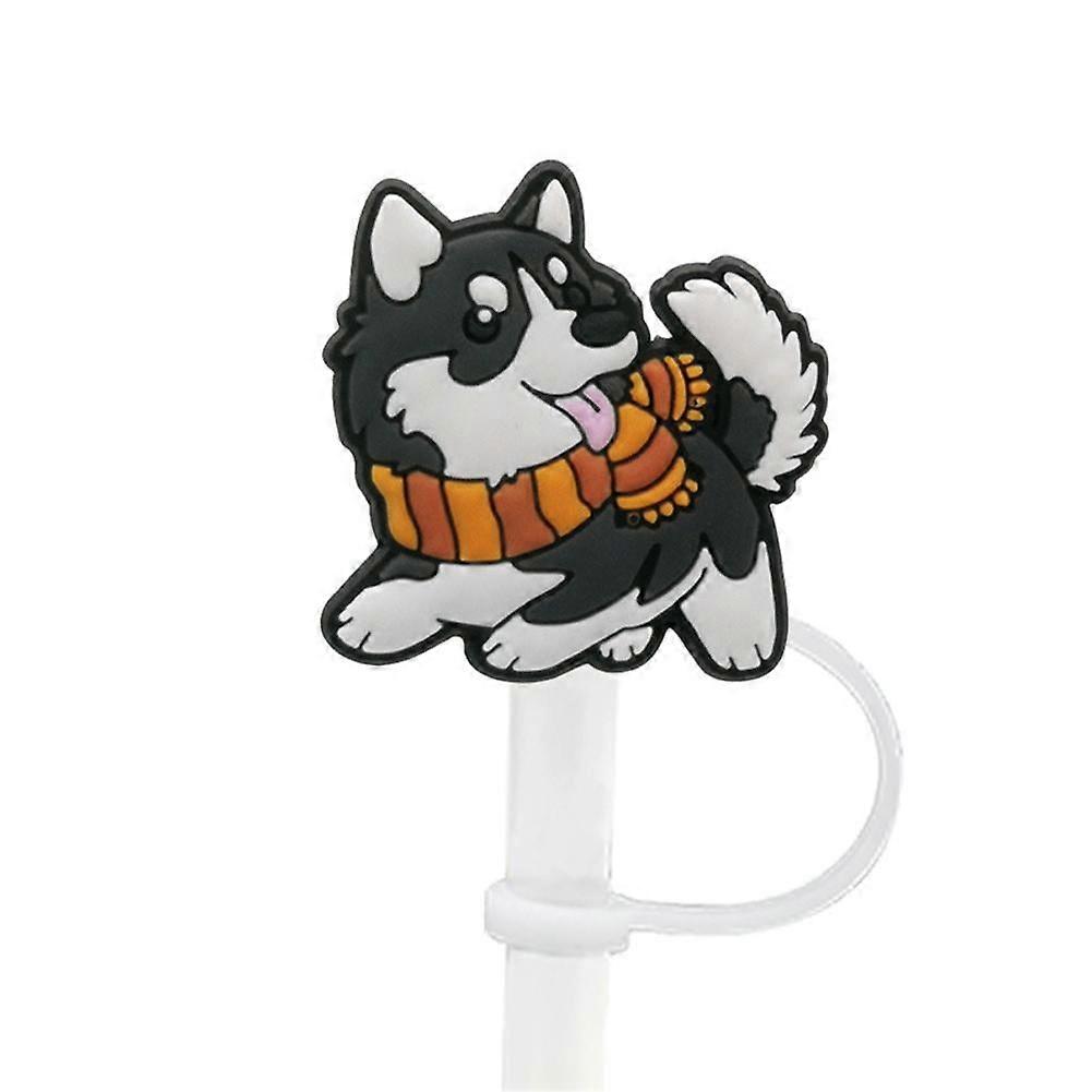 Gracefulvara 1807-13 New Cartoon Puppy Straw Cover 10mm Straw Cap Silicone Dust Plug Cute Anime Party Straw Decoration Cross