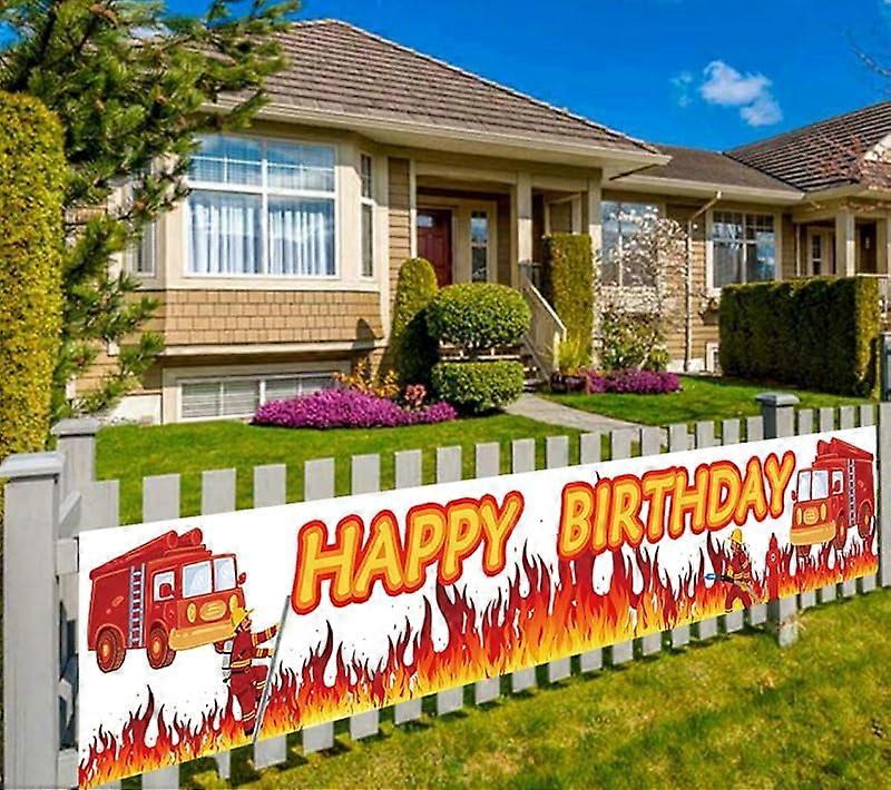Custom Fire Truck Happy Birthday Banner, Compatible with Firefighter Theme Party Supplies, Outdoor Indoor Decoration (9.8 x
