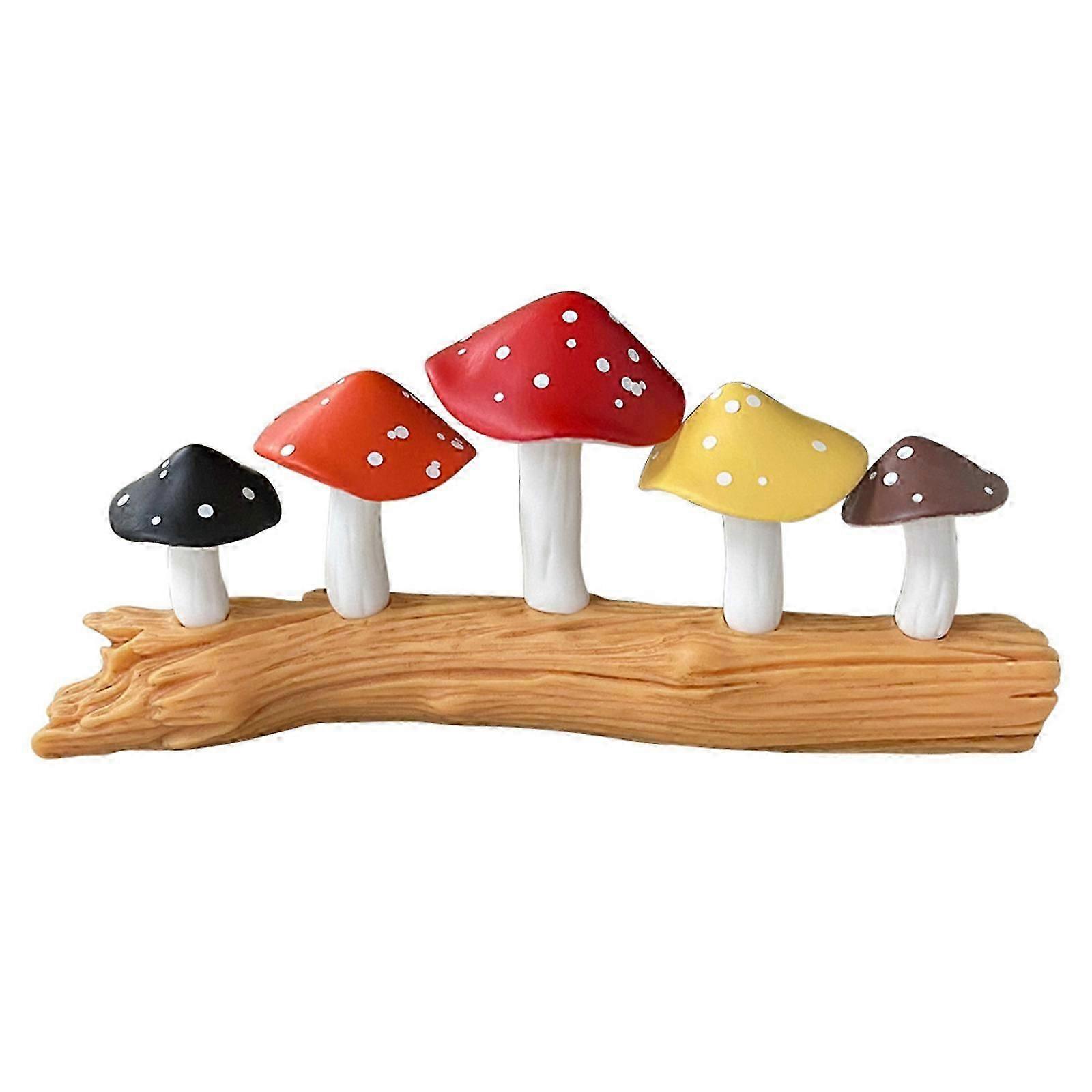 Colorful Resins Mushrooms on Tree Stump Figure Ornament for Home Office Desktop Decoration or Car Interiror Accessories Cs