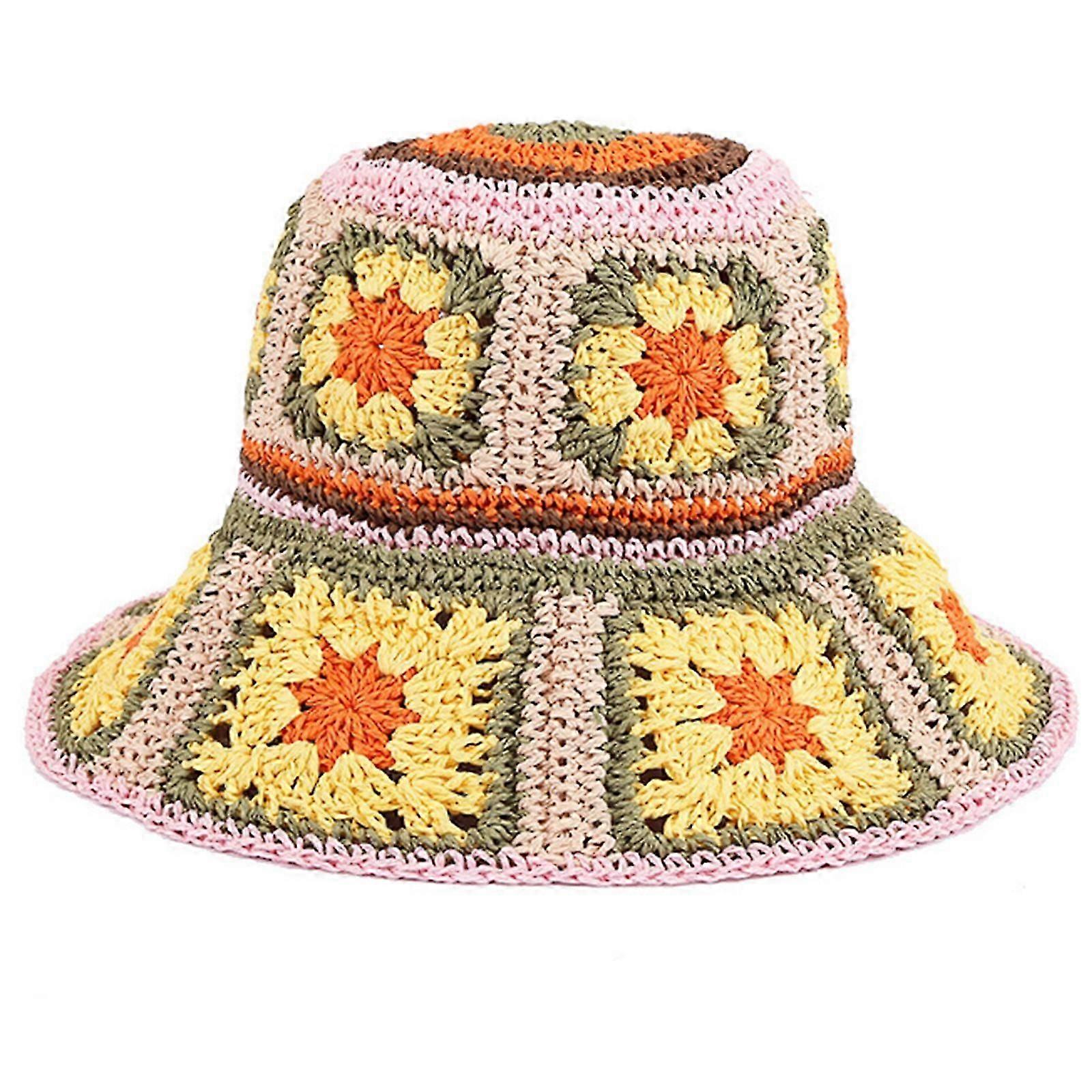 Girls Cute Sunscreen Beach Hat Hollow Flower Basin Hat Color Matching Basin Hat Patchwork for Sun Hat Crochet Fisherman Cs