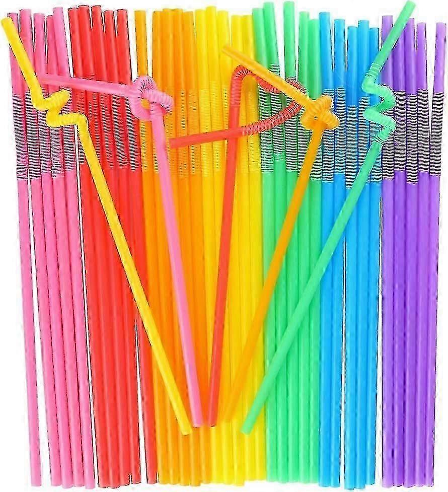 Disposable Color Straws, 100 Count Flexible Straws, Extra Long Straws Party Decorations, Mixed Colors Cs
