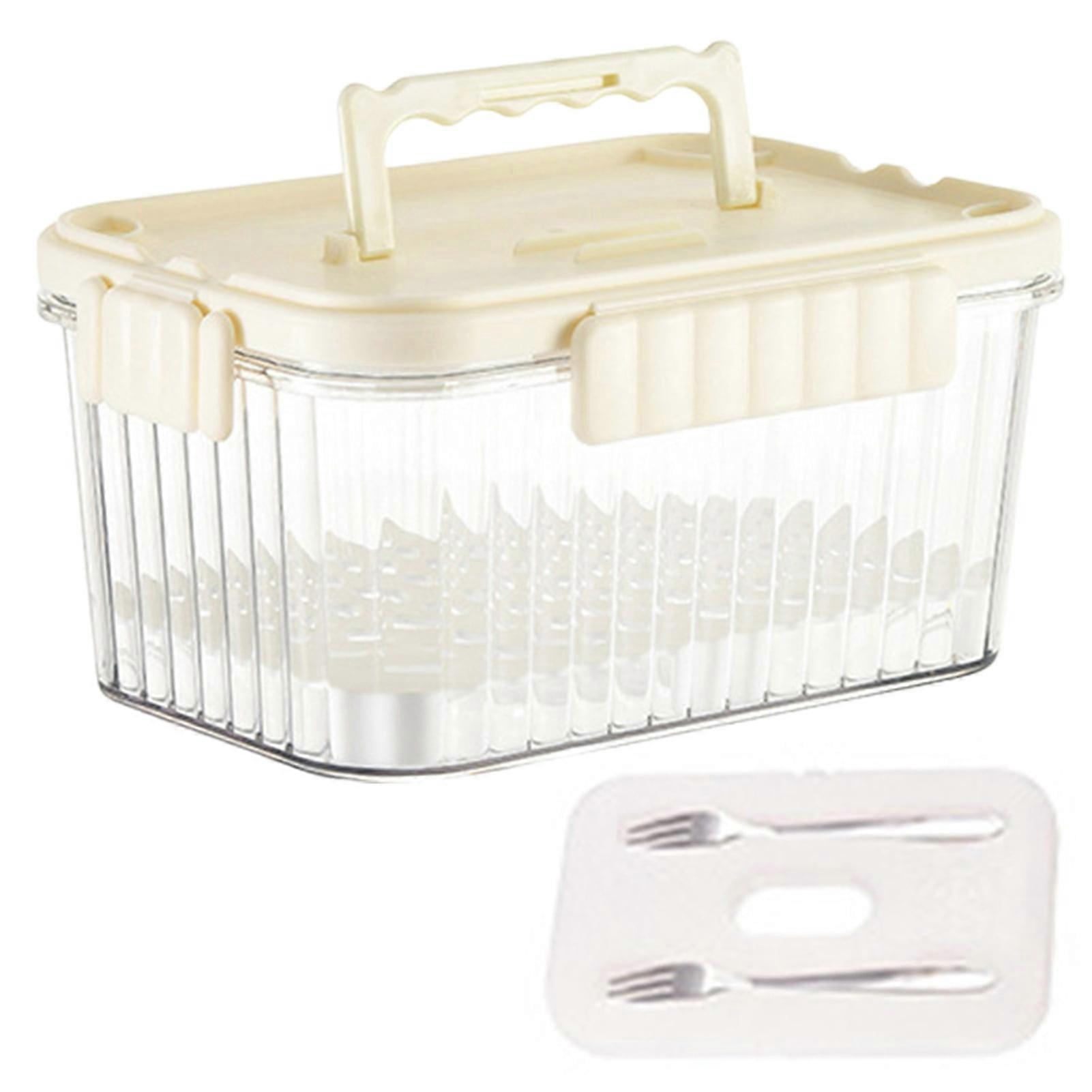 Hariumiu 1 Set 1500ml Food Preservation Box Large Capacity with Handle Picnic Hiking Fruit Storage Container Household Supplies-White