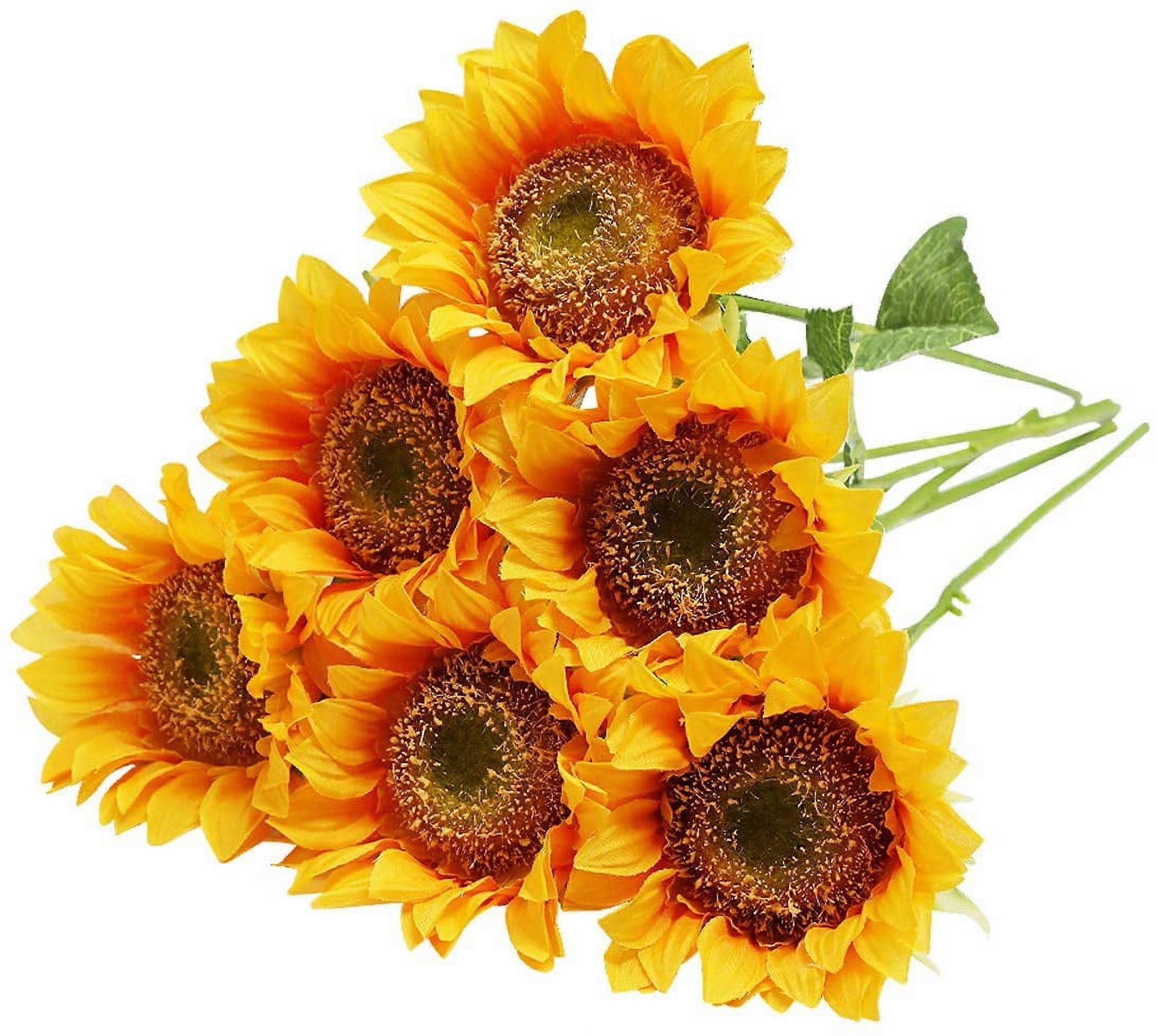 Sunflowers Artificial 6PCS Long Stem Silk Fall Flowers, Realistic Fake Bouquets for Wedding, Home, Office, Garden, Halloween Decor (Navy Blue)