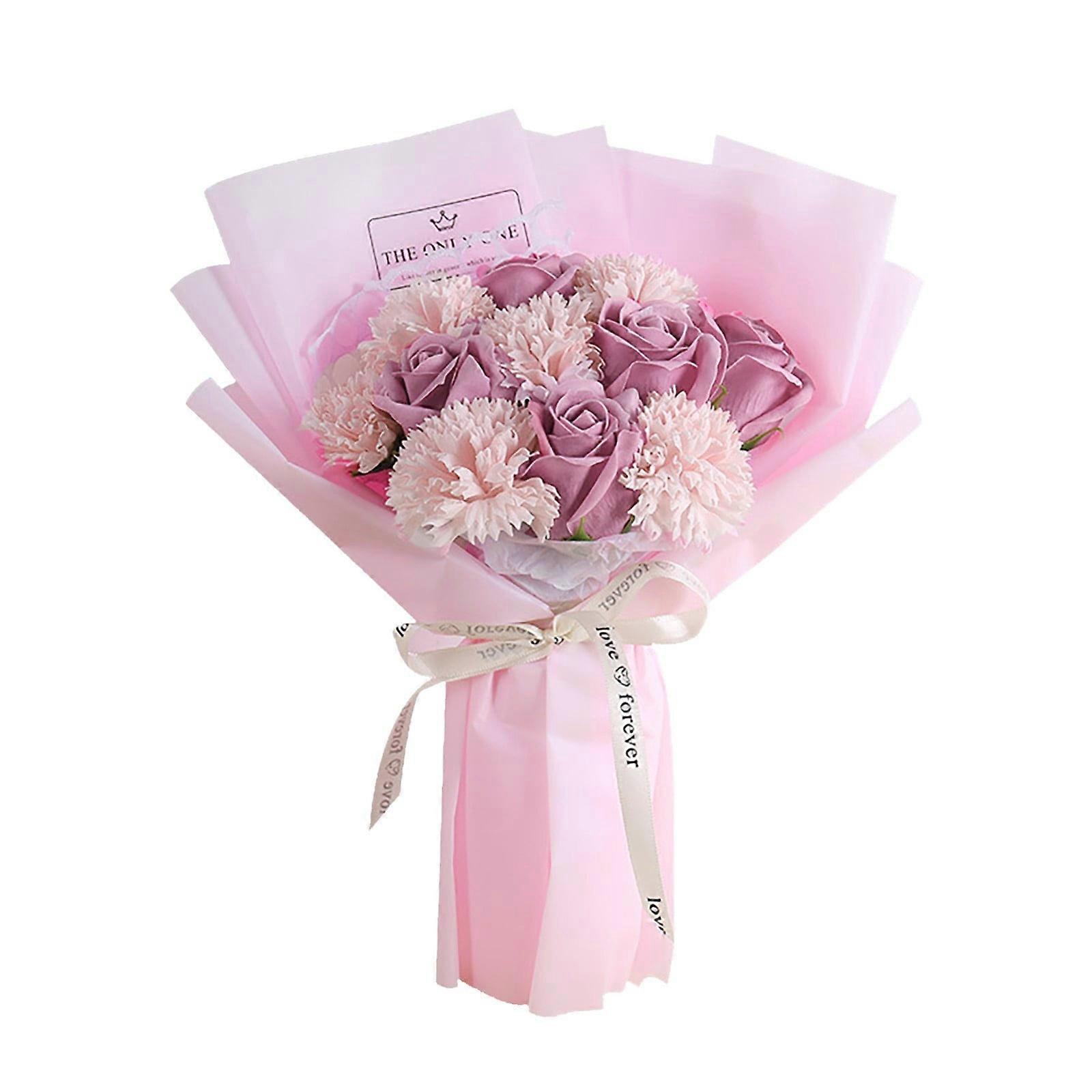 Yakbaofuo Artificial Flowers Preserved Flower Pink Carnation Soap Bouquet Rose Flower Mother's Day Gift