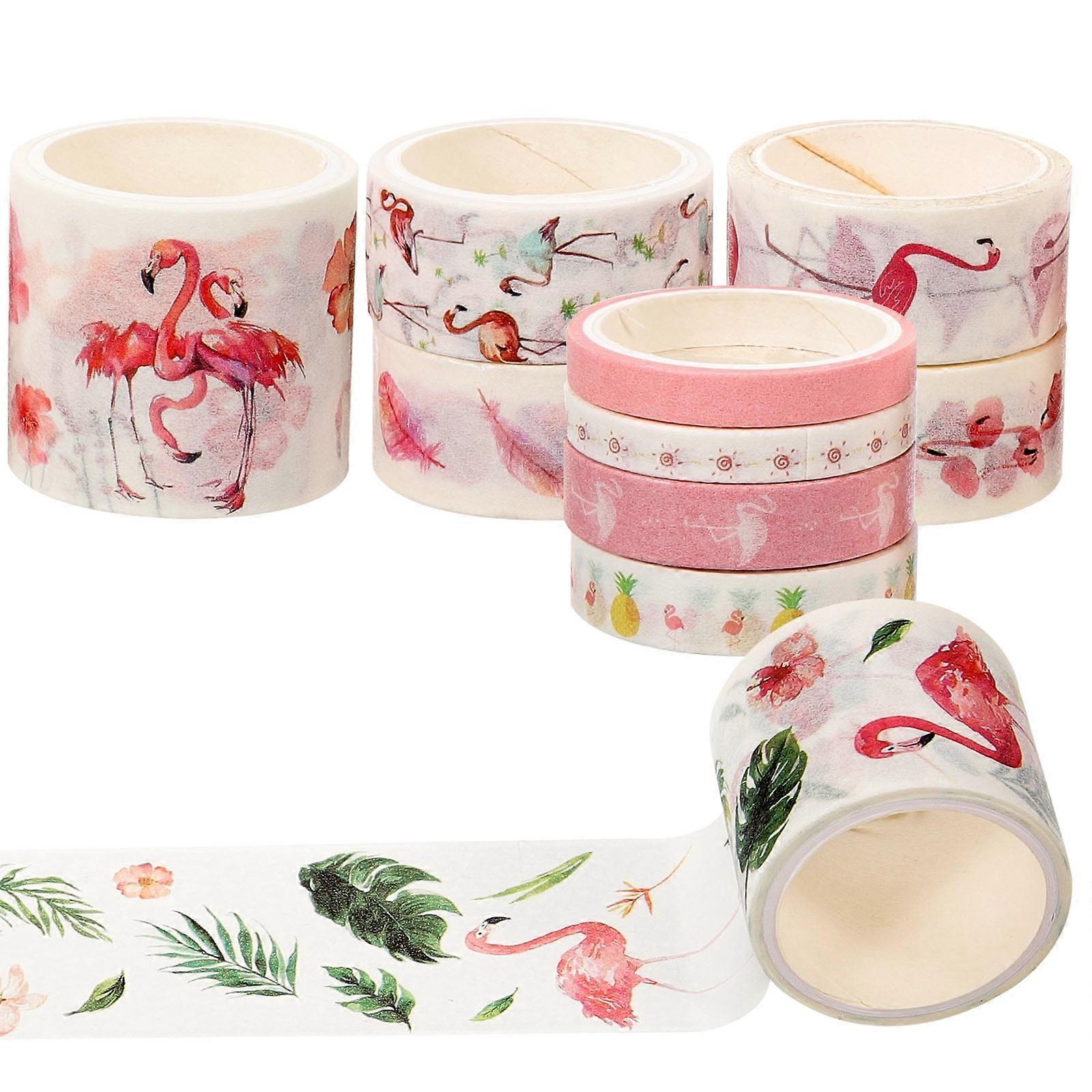 Pink 10 Rolls Japanese Paper Tape Retro Set Flamingo Masking DIY Crafts Aesthetic Decorative Bulk Flash Gift