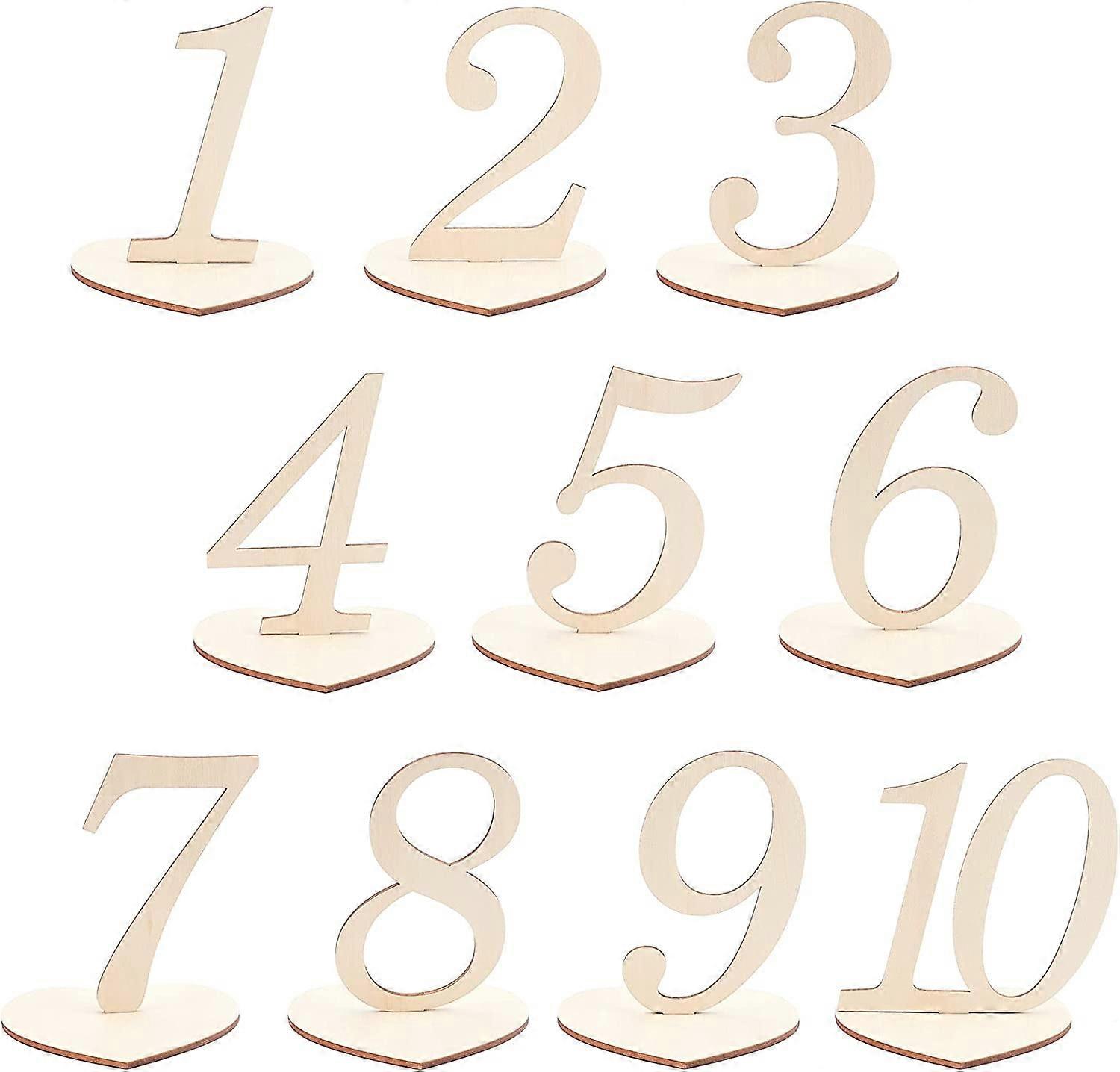 10 PCS Wooden Table Number Signs with Heart Stand, 1-20 Set for Wedding, Banquet, Birthday, Anniversary, Baby Shower Party, DIY Decor