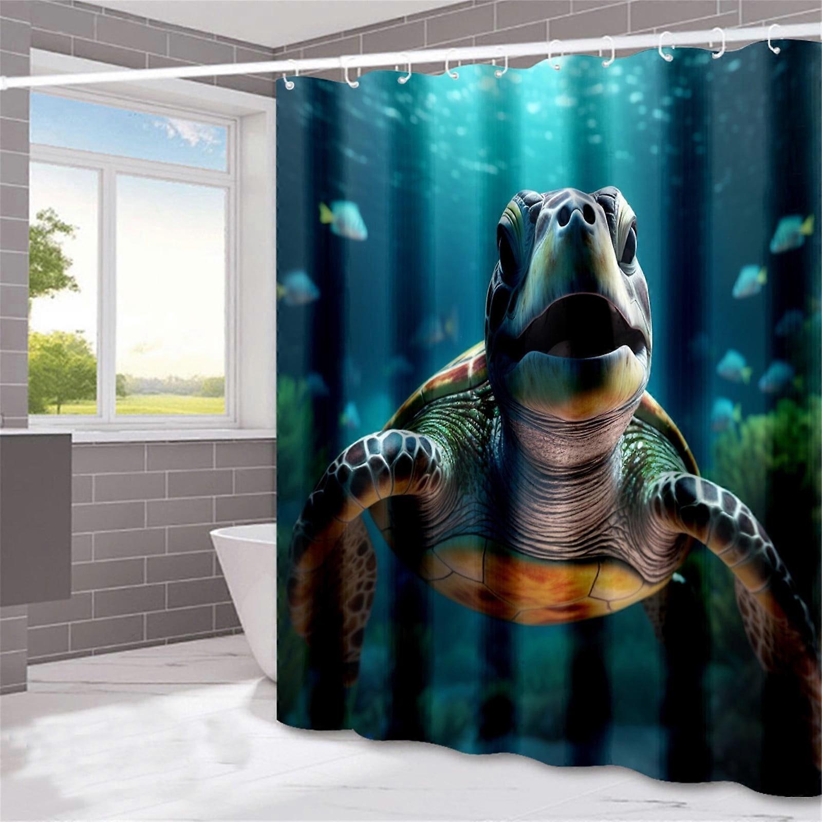 Chamoist Waterproof Shower Curtain, Sea Turtle Pattern Bathroom Decor with 12 Plastic Hooks, 90W x 180L, compatible with standard tubs