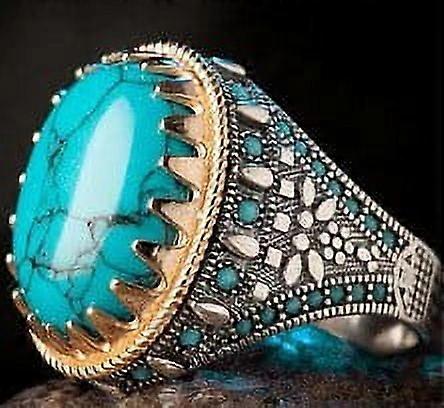 A Luxury New Vintage Egg-Shaped Turquoise Ring Exaggerated Men's Two-Tone Fashion Ring Ornament