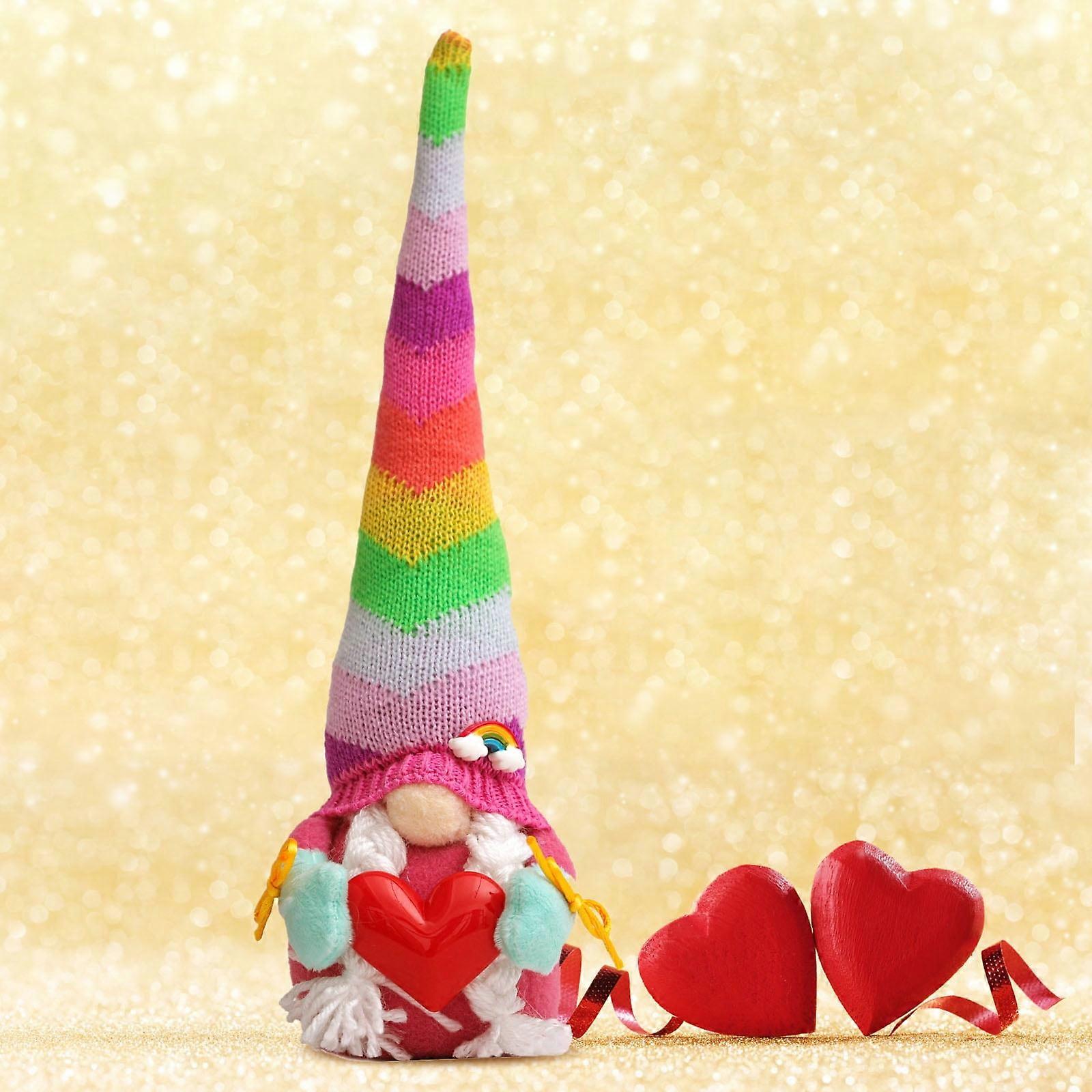 Rainbow Knit Gnome Plush Doll, 1Pc Valentine's Day Decoration, Compatible with Nordic Home Decor, Cute Desktop Ornament Gift