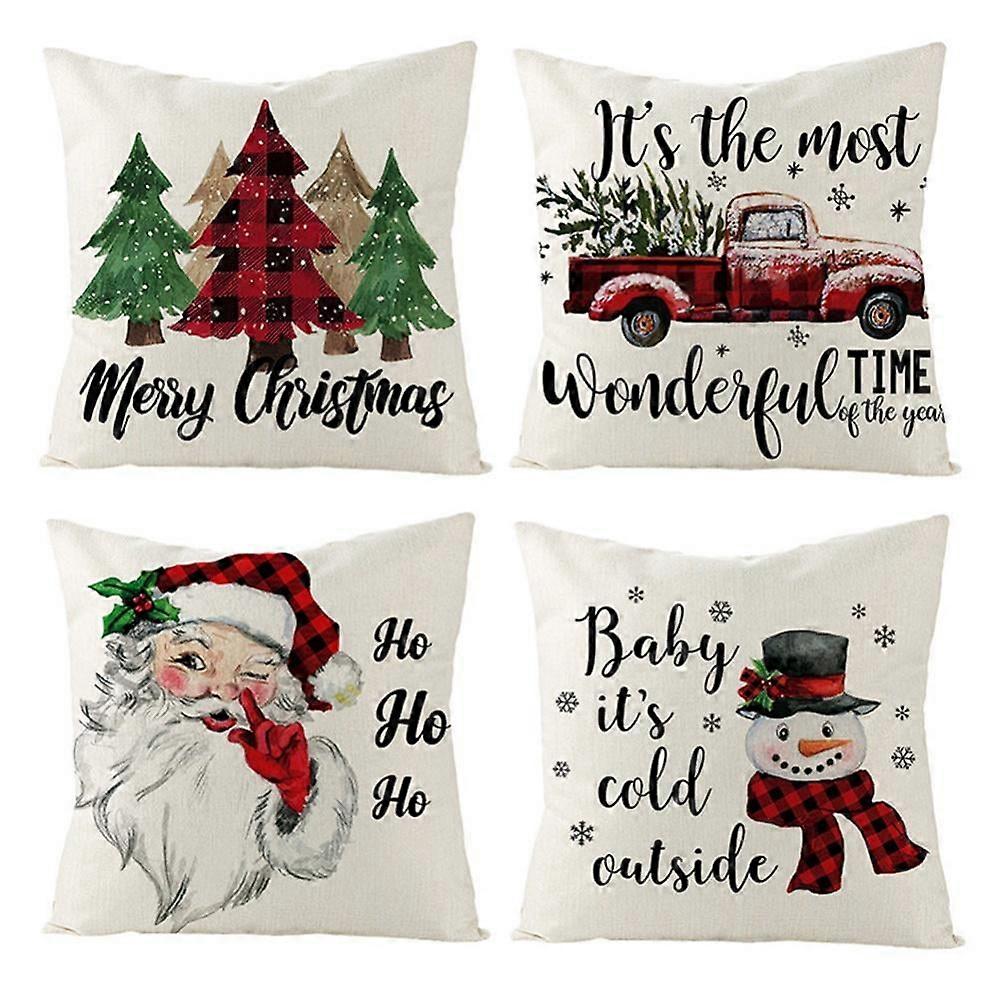 Christmas Pillow Covers 18x18 Inch Set of 4, Cotton Linen for Sofa, Home Decor, Farmhouse Xmas Gifts, Compatible with Christmas Decorations