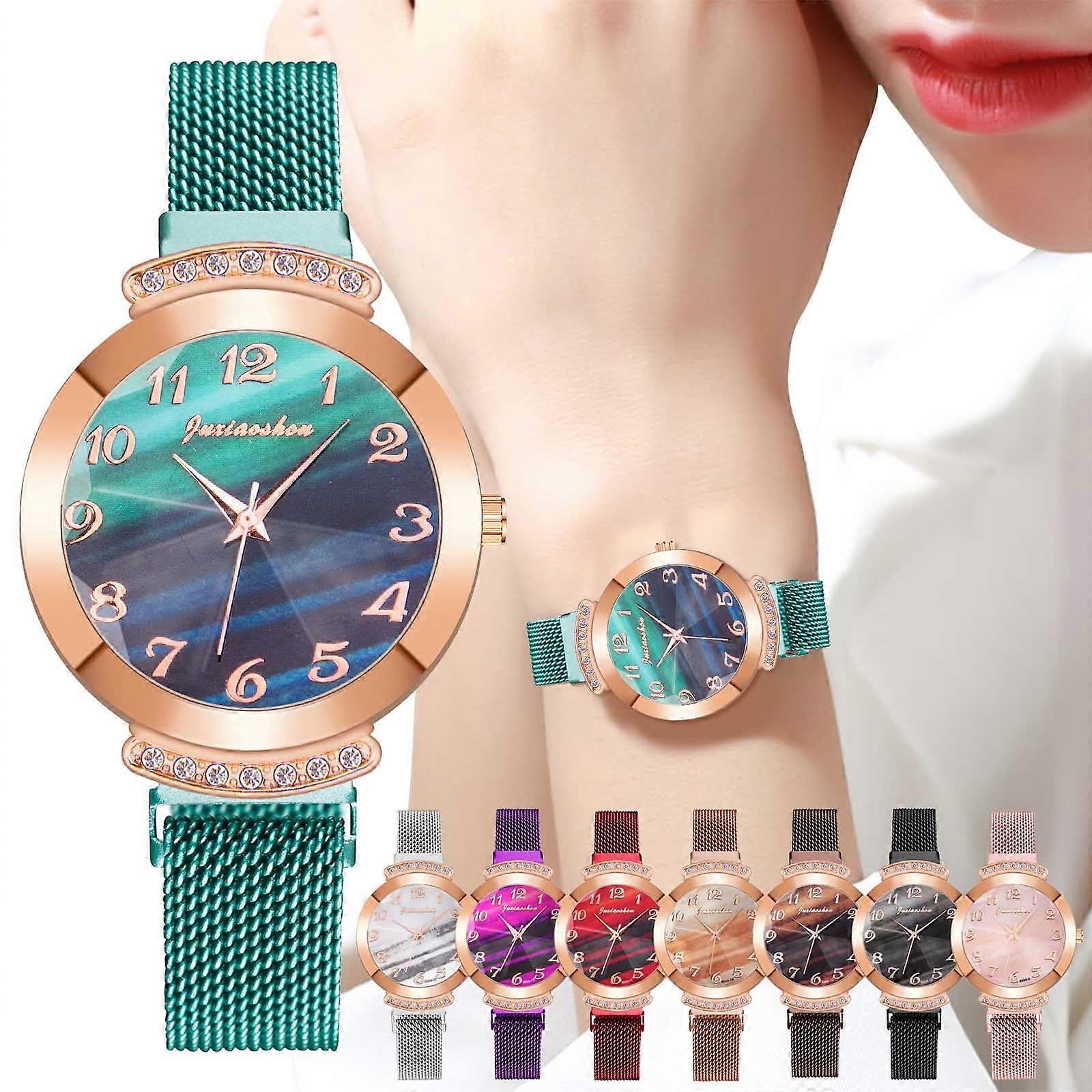 Jacenvly Clearance 2024 New Casual Quartz Stainless Steel Band Women Flower Rhinestone Watch Cool