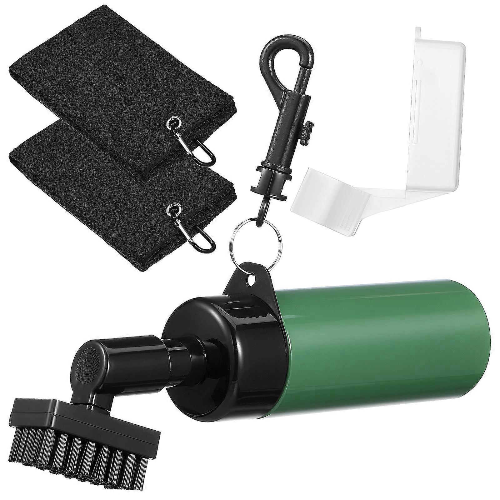 Description The golf club cleaner brush set is a versatile tool designed to clean thoroughly golf clubs. Its compact and lightweight design makes it easy to carry around. premium plastic, this cleaner brush is durable and long-lasting. It will make your golfing more enjoyable. Features -Color:As Shown -Material:Plastic -Size:21.00X7.20X4.10cm/8.25X2.83X1.61in - Effective cleaning: This cleaning brush is equipped with strong bristles that can reach to the grooves in the club, ensuring a thorough cleaning. - Portable and lightweight: With its compact and lightweight design, you can clip the cleaning bottle on your golf bag for easy access anytime. - Durable material: premium plastic, the brush and the bottle is sturdy enough to withstand regular use and various conditions during a long period. - Easy to use: You just need to fill the bottle with water or cleaner and press the pump for comprehensive application on the club, convenient to use. - Multi-functional cleaner: This cleaning brush is not only suitable for cleaning golf clubs, but also suitable for cleaning golf carts, shoes, bags and more. Effective cleaning: This cleaning brush is equipped with strong bristles that can reach to the grooves in the club, ensuring a thorough cleaning. Portable and lightweight: With its compact and lightweight design, you can clip the cleaning bottle on your golf bag for easy access anytime. Durable material: premium plastic, the brush and the bottle is sturdy enough to withstand regular use and various conditions during a long period. Easy to use: You just need to fill the bottle with water or cleaner and press the pump for comprehensive application on the club, convenient to use. Multi-functional cleaner: This cleaning brush is not only suitable for cleaning golf clubs, but also suitable for cleaning golf carts, shoes, bags and more.