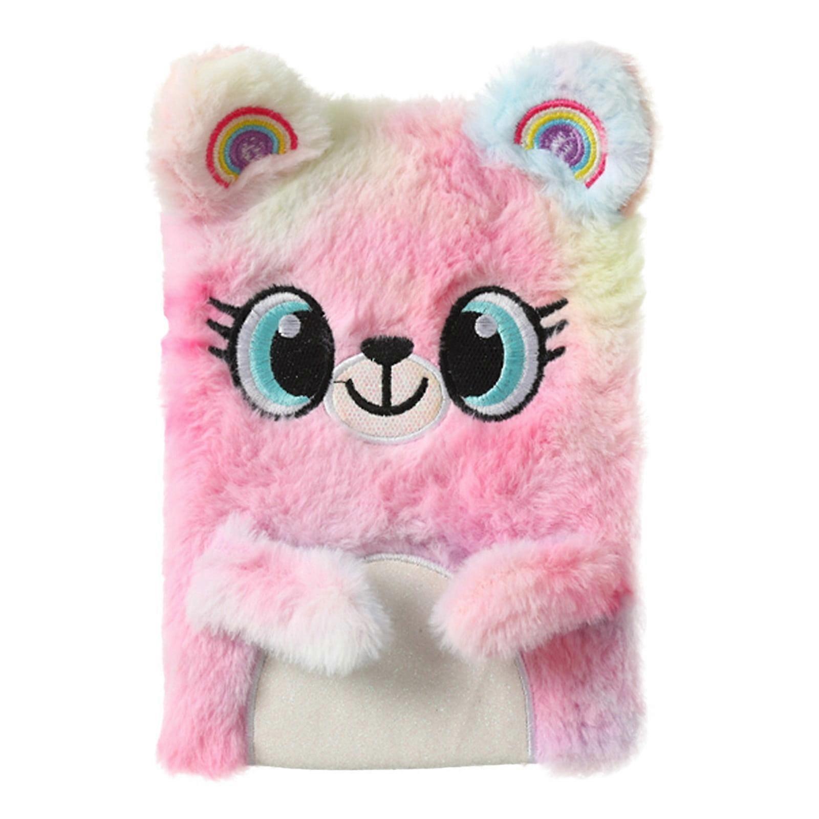 Cute Panda Plush Notebook, Pink Heart Diary for Girls, Cartoon Stationery Notepad 1Pc
