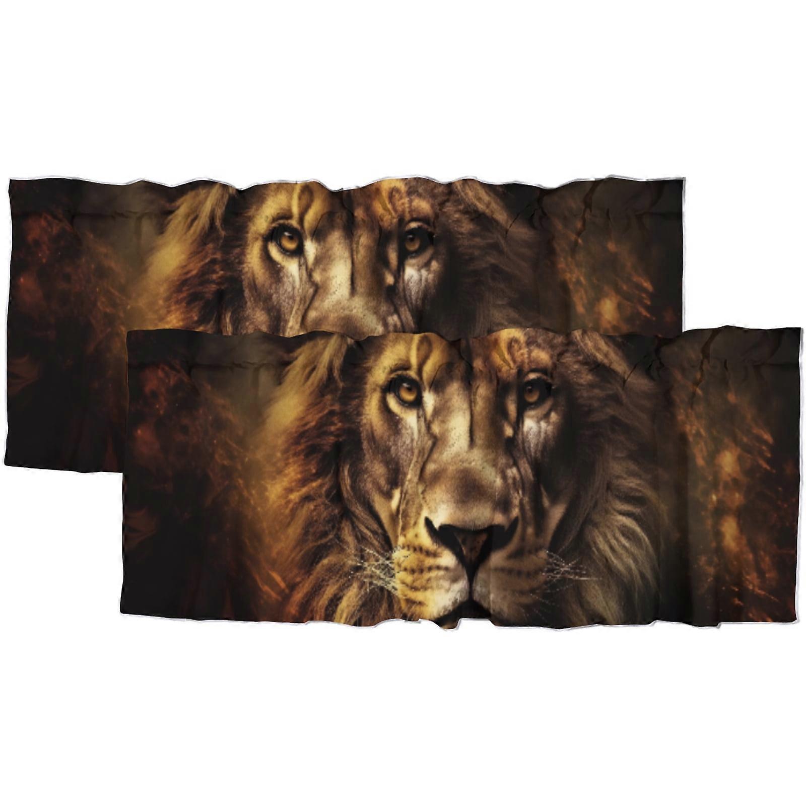 Lions Valance Curtain African Jungle Vintage Wildlife Funny Animal Rod Pocket Decoration Window Valance Curtains 54x18inch(2Pcs)
