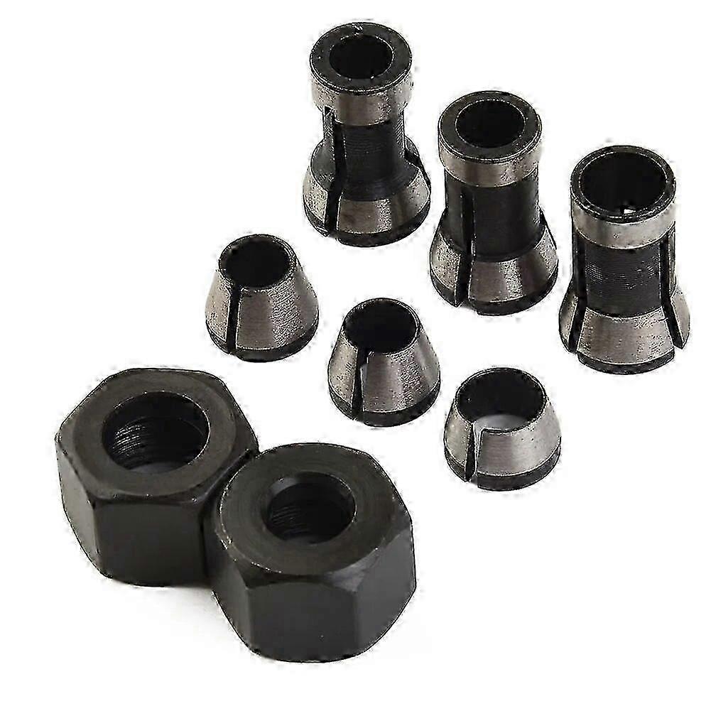 TroveMart 8 Pcs Collet 6/635/8mm Black+silver CNC Router Collet Carbon Steel Router Bit Collet Suitable For Engraving Machine SZRH