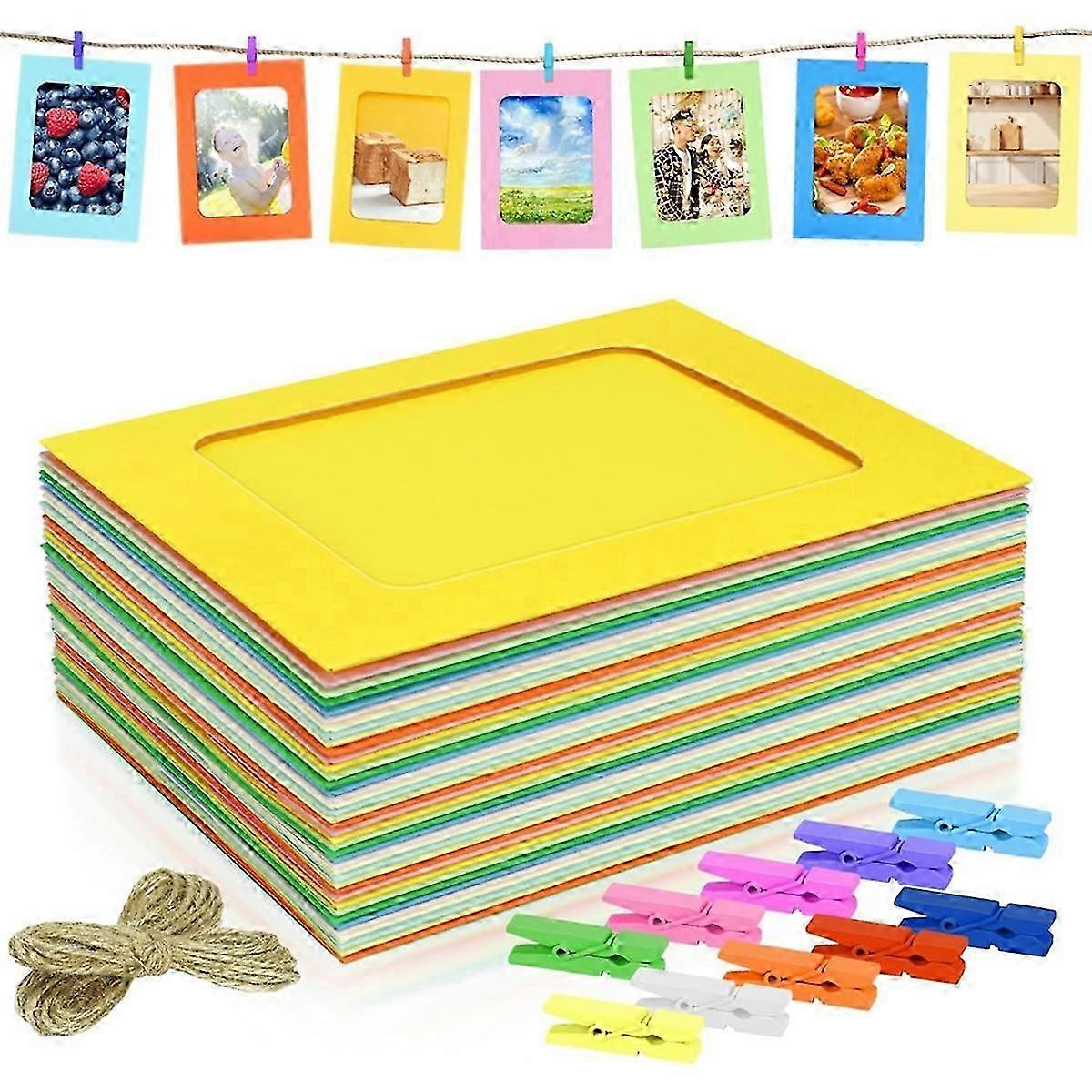 50 Pack Paper Picture Frames, 4x6 Colorful P o Holder with Wooden Clips and String for Wall Decor and Party Supplies SZRH