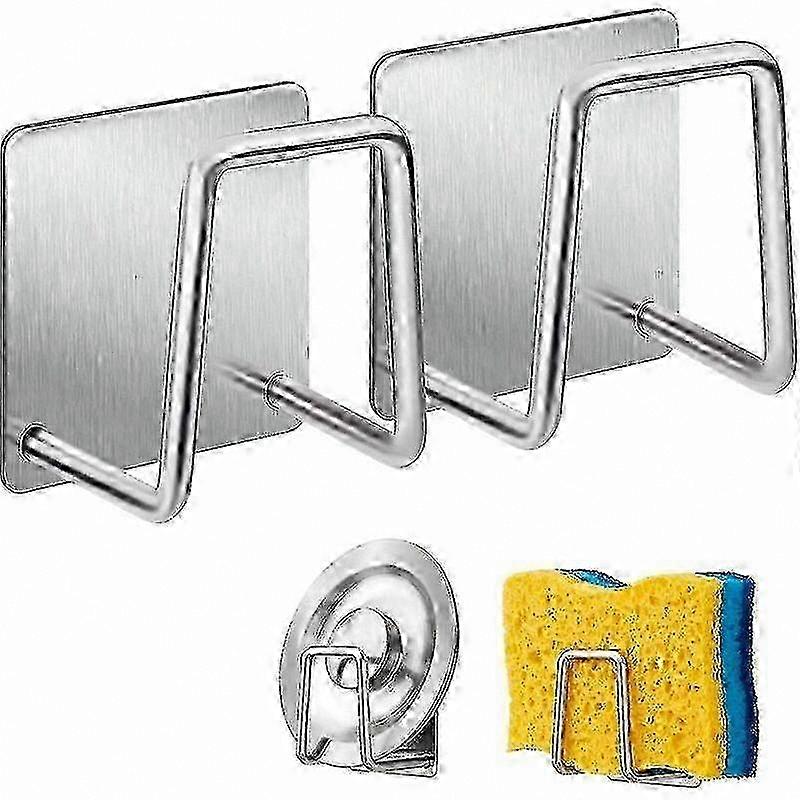 Stainless Steel Sponge Holder Set with Adhesive Hooks for Kitchen and Bathroom Organization SZRH