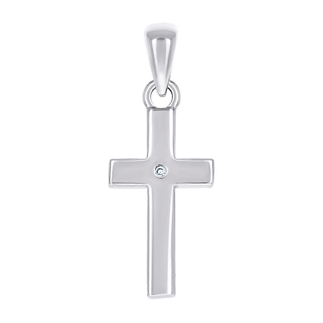 925 Sterling Silver Unisex Cubic Zirconia Cross Religious Charm Pendant Necklace 23.2x8.4mm Wide Pendant for Women